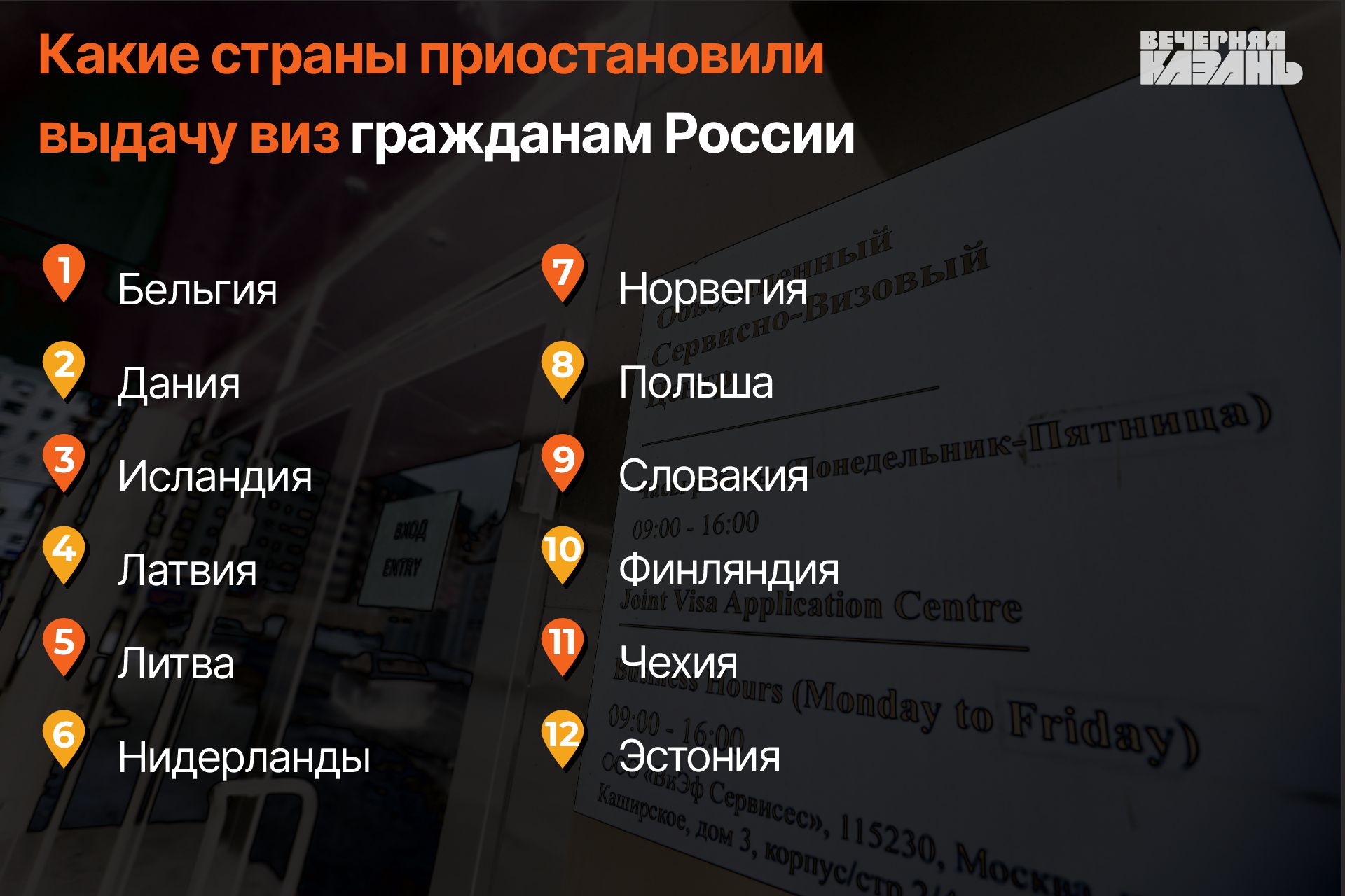 Какие страны не дают визы гражданам России? Бельгия, Дания, Исландия, Латвия, Литва, Нидерланды, Норвегия, Польша, Словакия, Финляндия, Чехия и Эстония приостановили выдачу туристических виз заявителям из нашей страны.