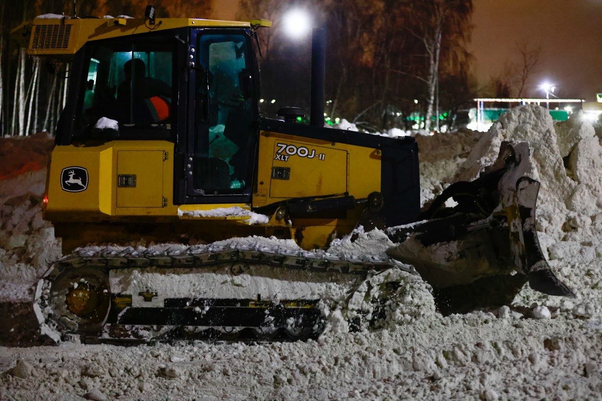 Водитель трактора-погрузчика компании «Легион» Навиль Камалеев рассказал журналистам, что его рабочая смена длится 12 часов. На тракторе он собирает снег с улиц и грузит его в самосвалы. Горячим питанием водители обеспечены. Очистка от снега ста метров дороги занимает около часа, а если мешают припаркованные машины, то полтора часа.