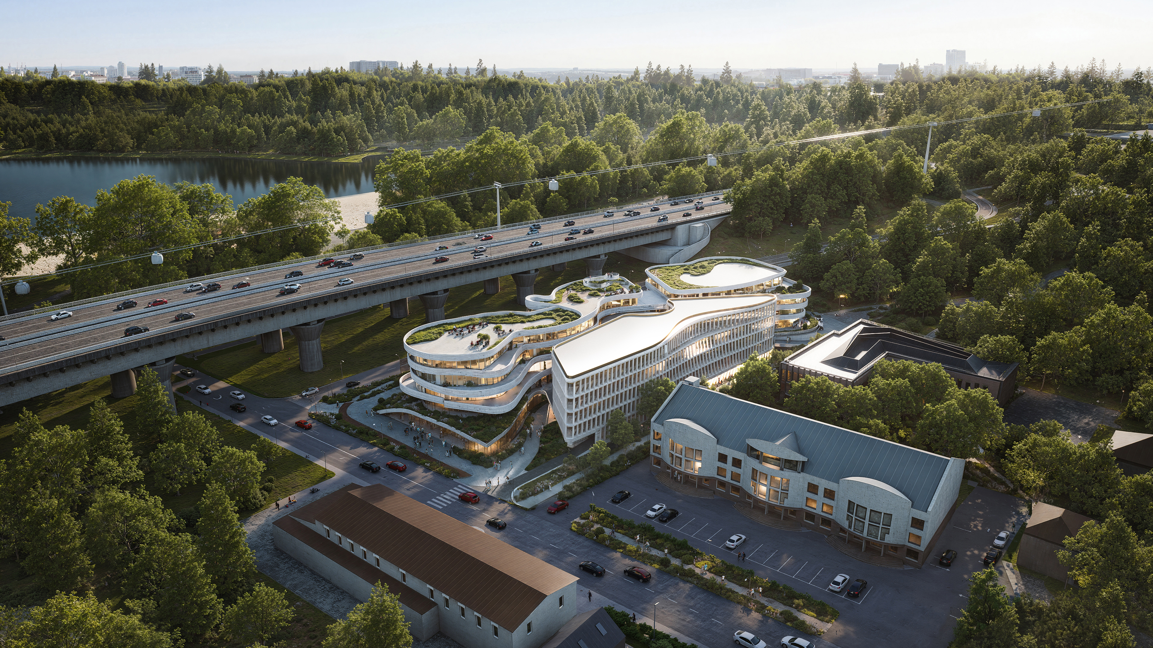 - Биоморфный фасад, зелёная крыша, панорама с моста – это, конечно, впечатляет. Но главное в этом проекте не только красота. Он создан с учётом пешеходной доступности: люди смогут свободно передвигаться по территории без заборов и турникетов. Кроме того, фасад активный – это не глухая стена, а витрины и заведения, мимо которых приятно прогуливаться. Комплекс гармонично вписывается в городскую среду, укрепляя связь между парком и набережной и становясь её неотъемлемой частью, а не чужеродным элементом, - заявил Закиев.