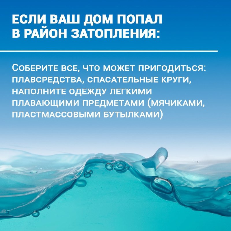 Если дом попал в зону затопления, в первую очередь нужно отключить там газ, воду и электричество. Еду, ценные вещи, одежду необходимо перенести на верхние этажи. Также важно собрать все плавсредства, наполнить одежду легкими плавающими предметами, например, пластмассовыми бутылками.