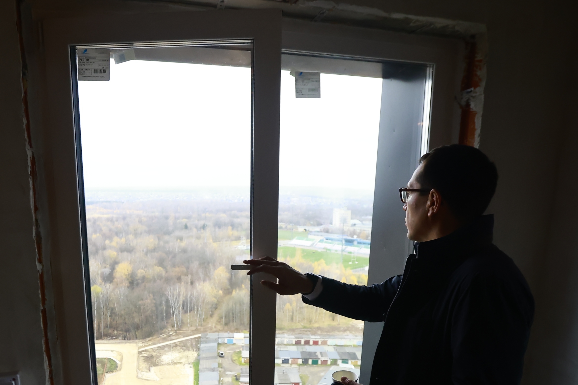 - Оконные проемы в каждой квартире увеличенные, высота подоконника - порядка 60 сантиметров. Это позволяет увеличить попадание естественного света в квартиру, - рассказал Нурмухаметов. - Еще один стандарт: это корзинка кондиционера, чтобы жители не портили фасад.
