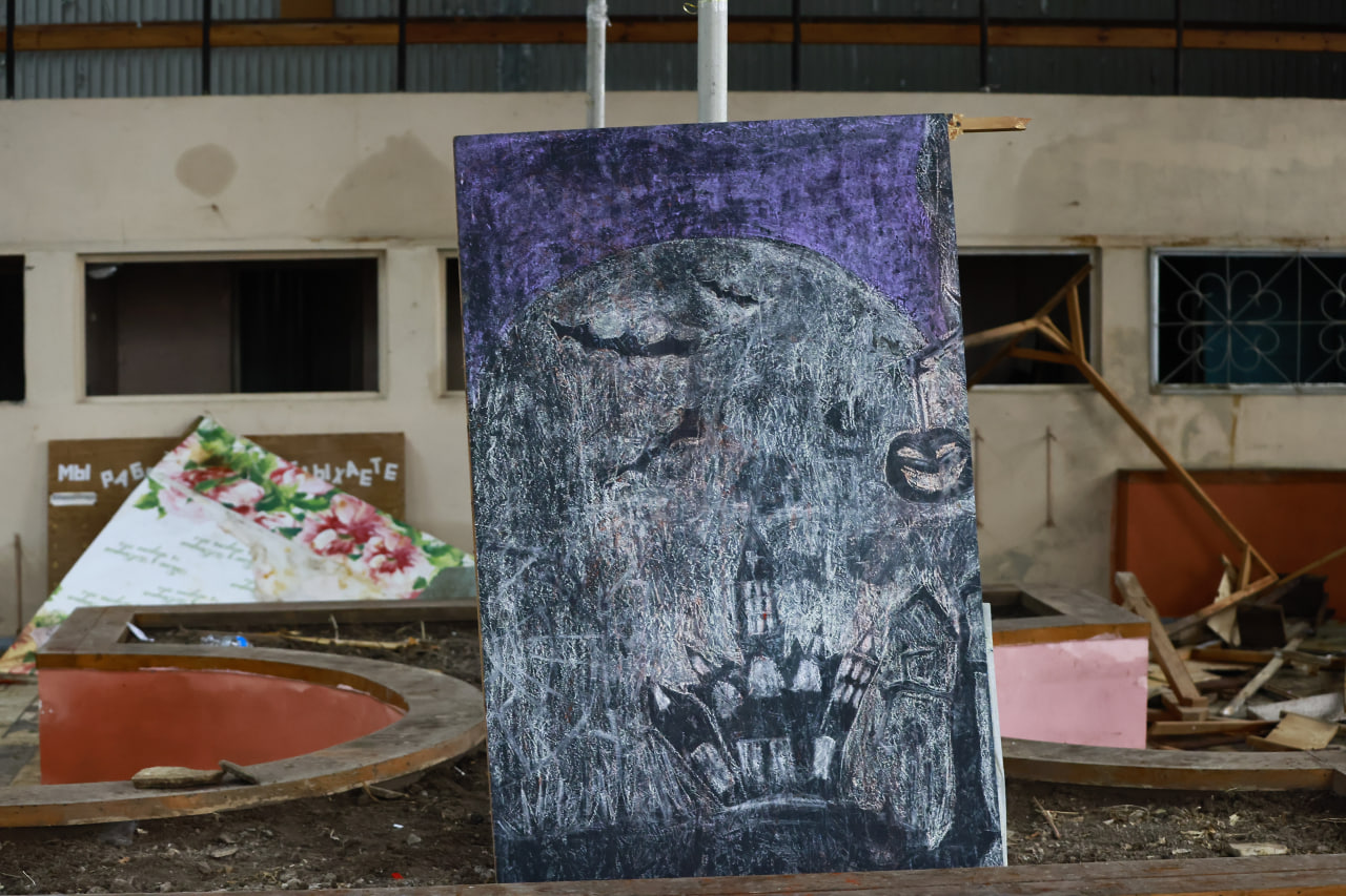 Корреспондент «Вечерней Казани» был в КСЦ два раза. Первый — в середине марта, совершенно случайно заглянув в разбитое окно серого здания. А второй раз — уже для текста. Заметно, что в здании бывают — всего за две недели практически все вещи в здании поменяли свое местоположение. Например, появились разбитые тарелки на полу, разорвали элемент декора, раньше лежавший целым, появились новые бутылки... Но занимаются здесь и созерцанием — кто-то нарисовал на доске картину, принес живые цветы.