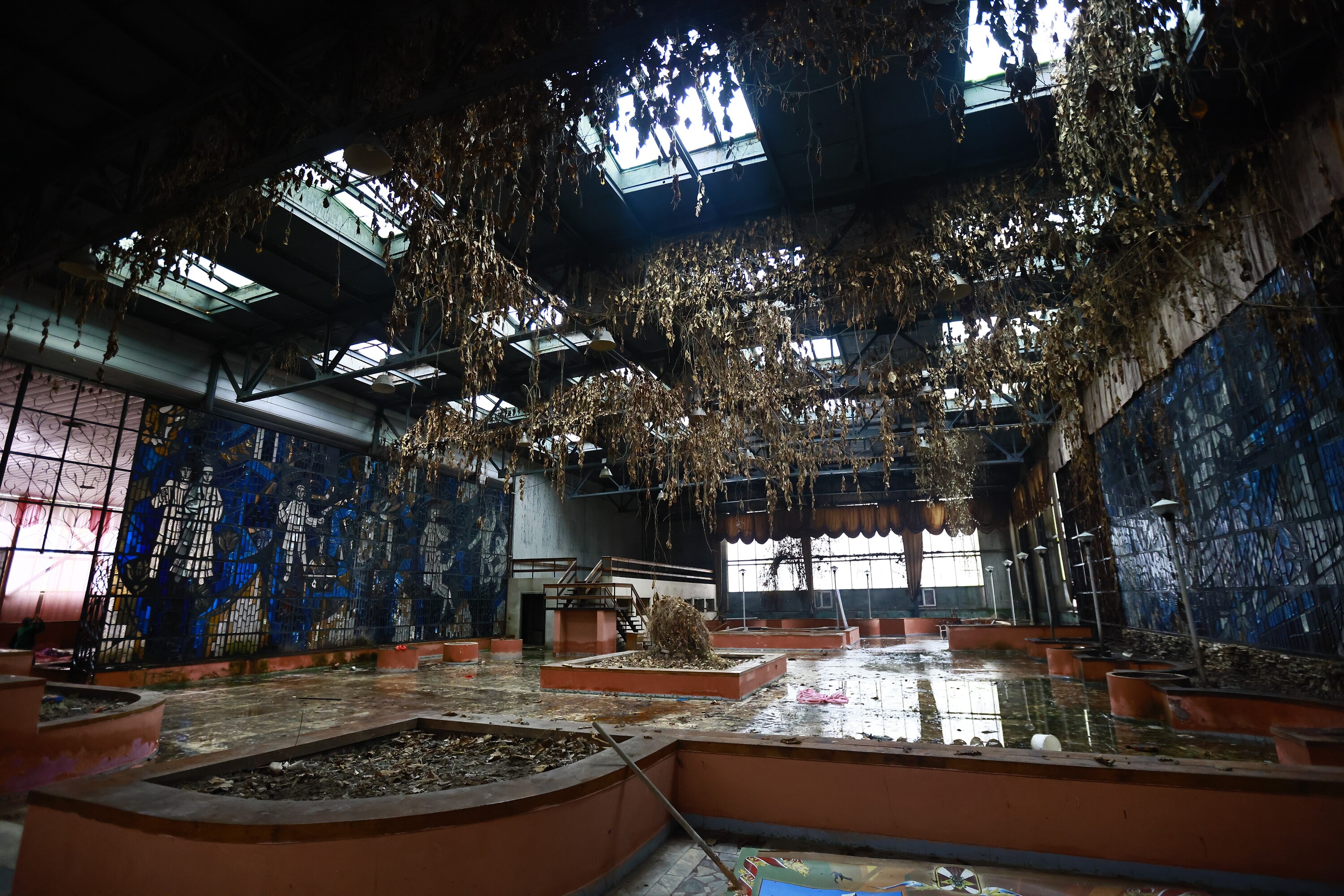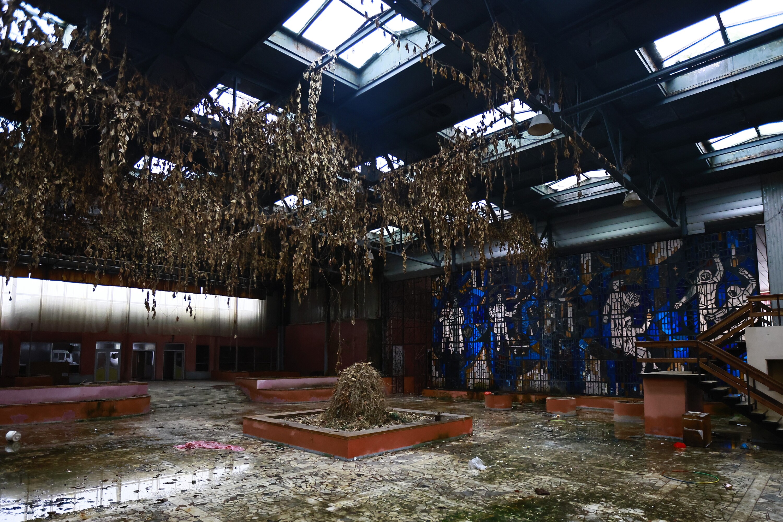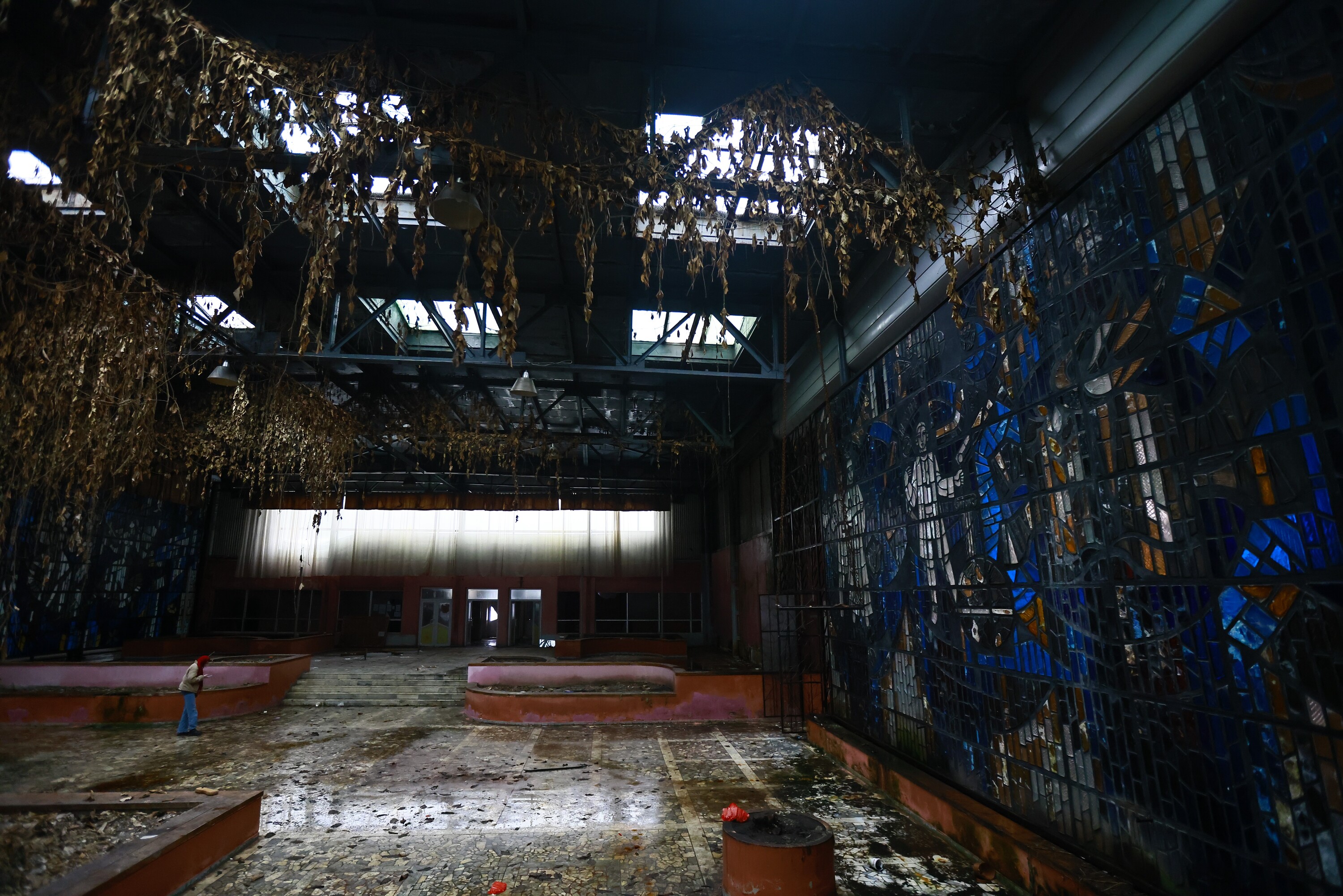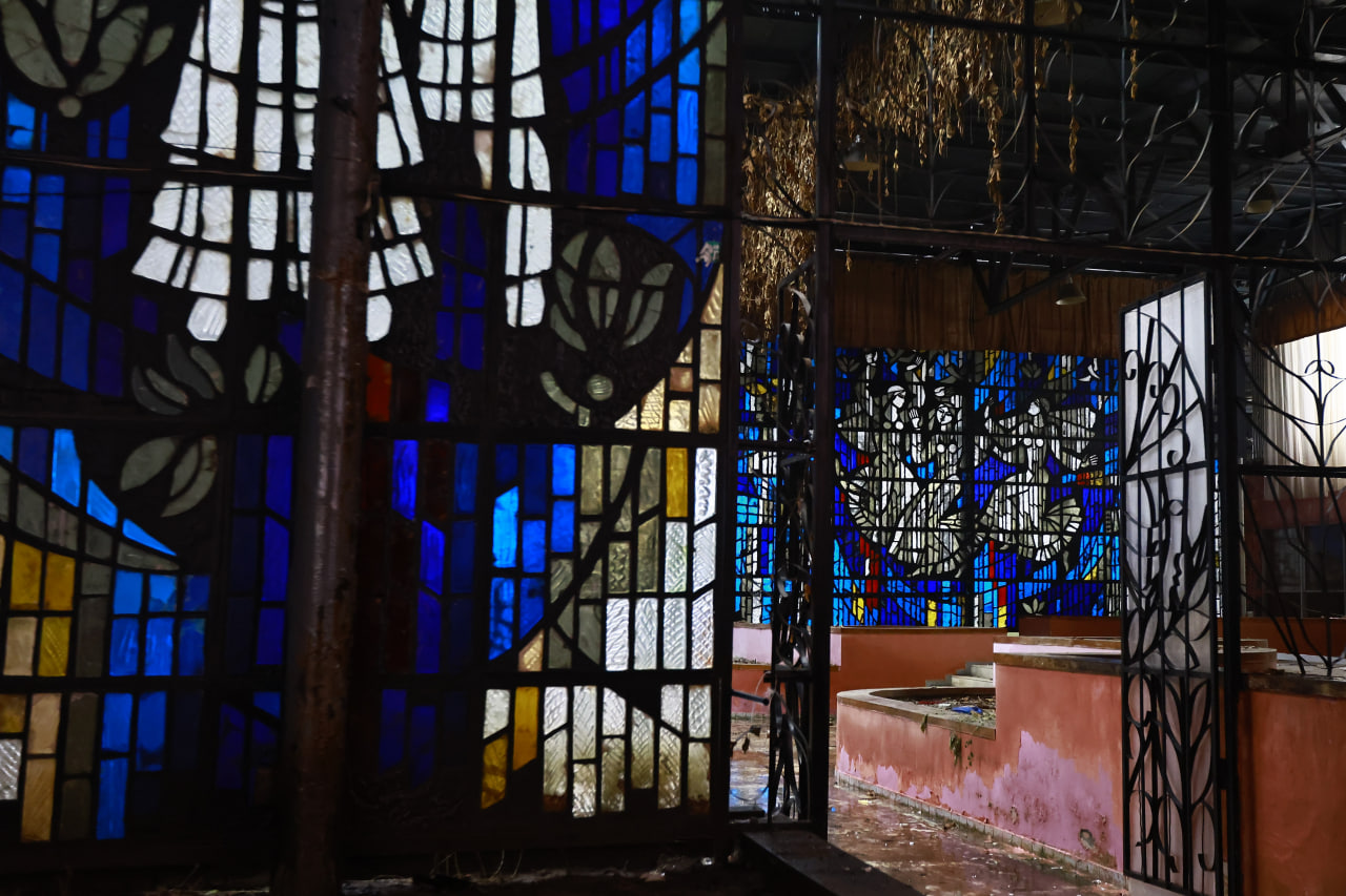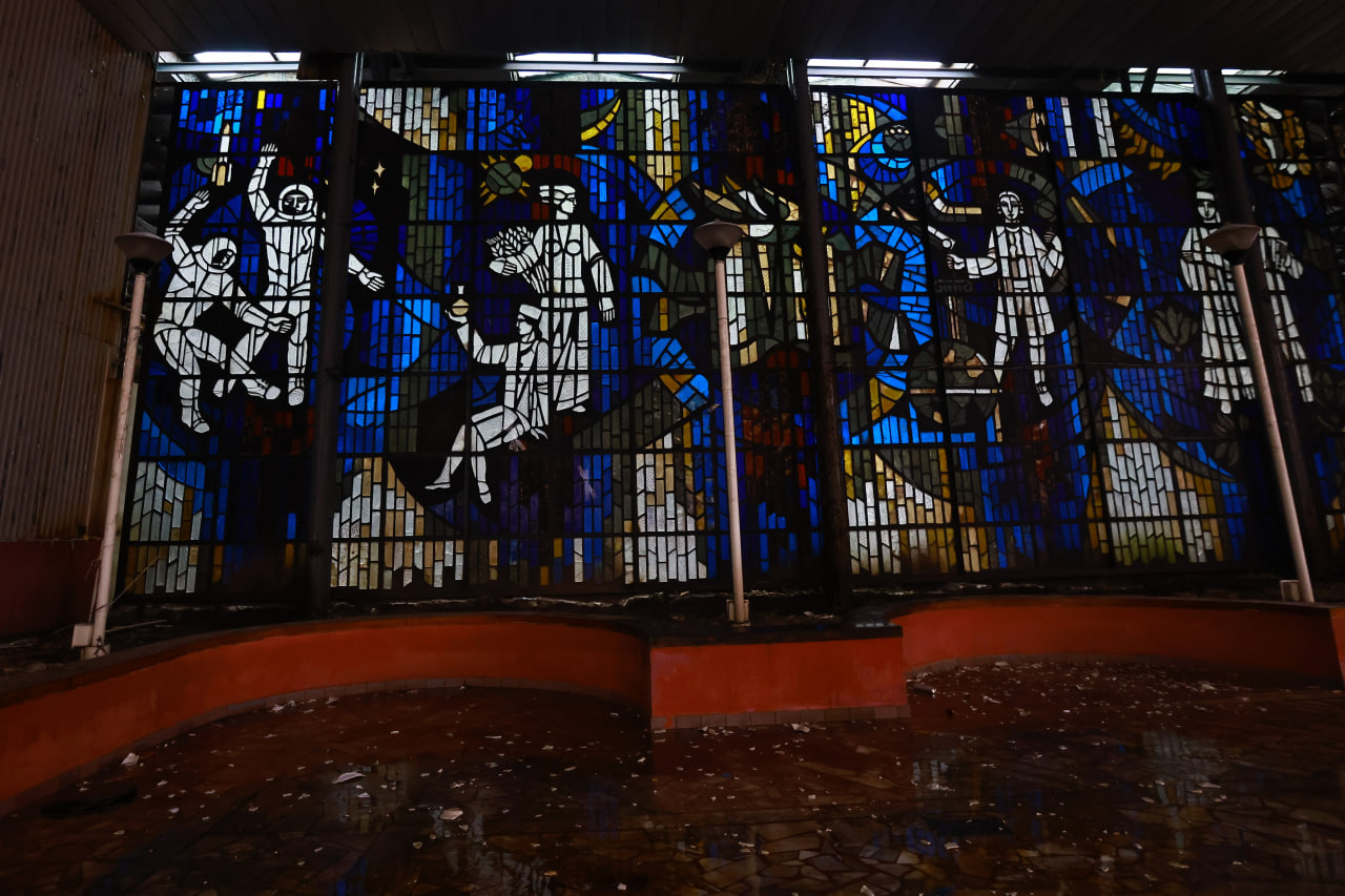 Целыми в здании можно назвать лишь витражи — они сохранились в прекрасном состоянии. Так что же случилось со зданием?