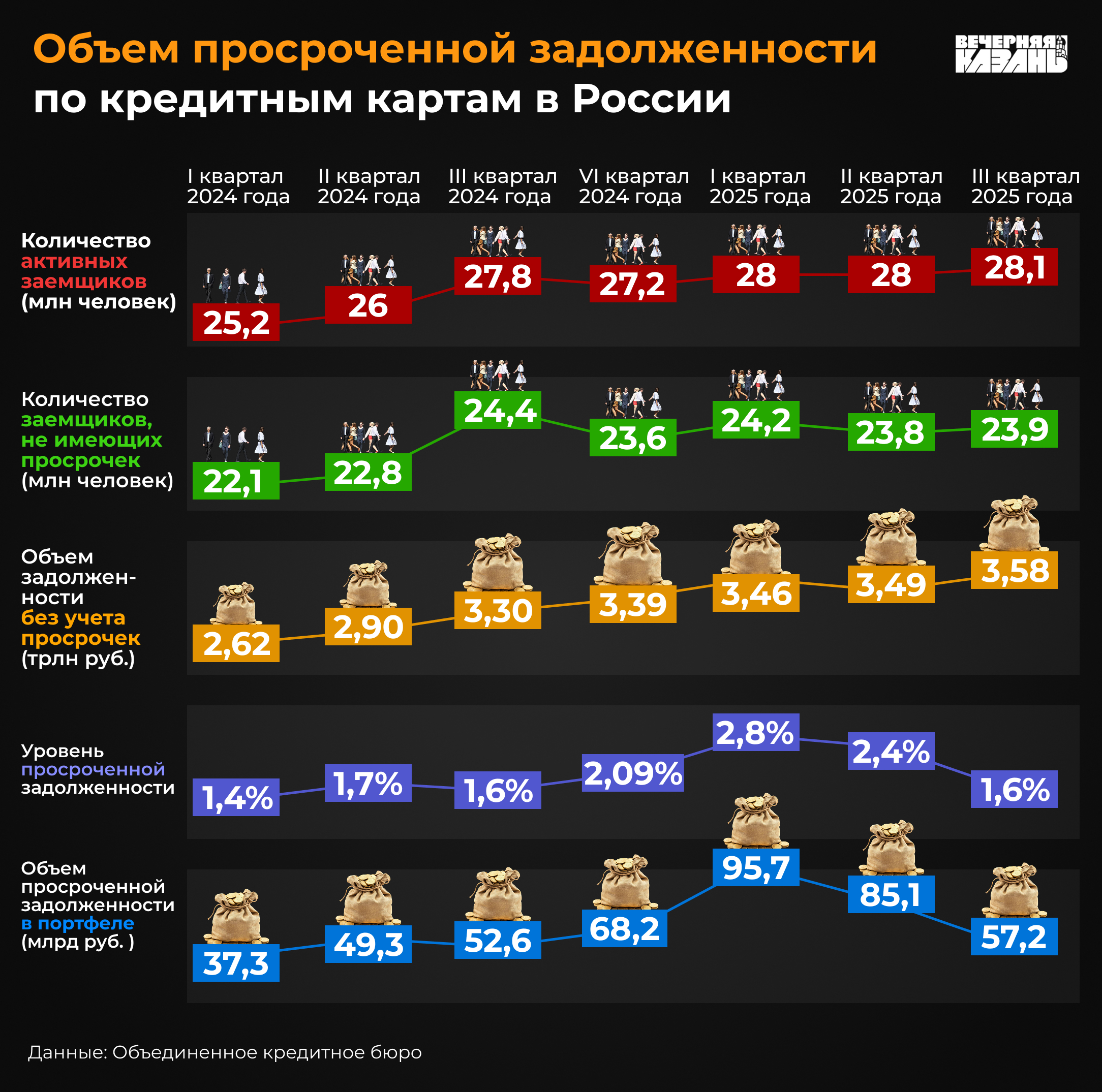 — Когда значительная часть зарплаты идет на обслуживание карт, любое сокращение дохода быстро отражается в пропусках платежей, а высокие ставки и растущие комиссии ускоряют накопление долгов. Рост просрочек чаще всего объясняется сочетанием высокой долговой нагрузки и скромных сбережений у домохозяйств, — пояснил Кузьминых.