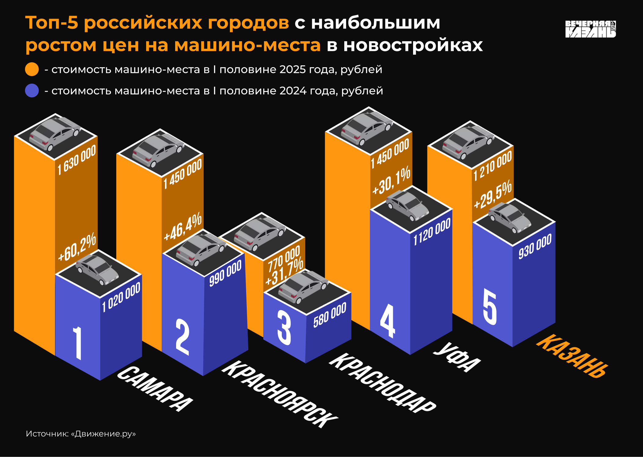 Тот факт, что они существенно подорожали, подтверждает и вице-президент Гильдии риелторов Татарстана. По его мнению, это связано с тем, что в черте города мало мест для этих целей. Собеседник издания уточнил, что парковка в нашем городе сейчас стоит от 1 миллиона до пяти миллионов рублей (и это опять-таки в среднем) в зависимости от того, о каком жилом комплексе идет речь.