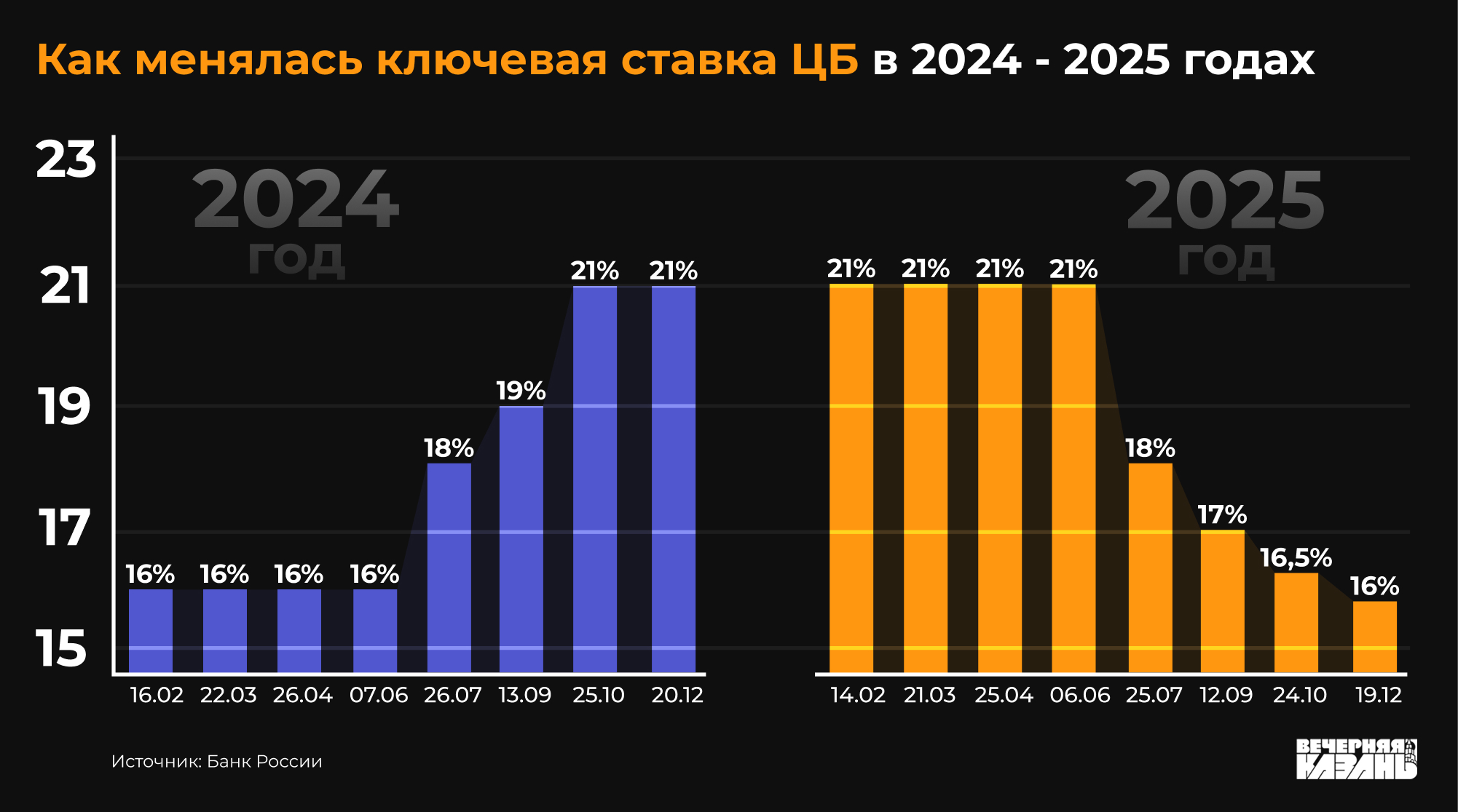 Ключевая ставка в 2025 году побила рекорды прошлых лет, оставаясь высокой на протяжении всего года, отметил «Вечерней Казани» директор Центра региональной политики Российской академии народного хозяйства и государственной службы при президенте РФ (РАНХиГС) Владимир Климанов.