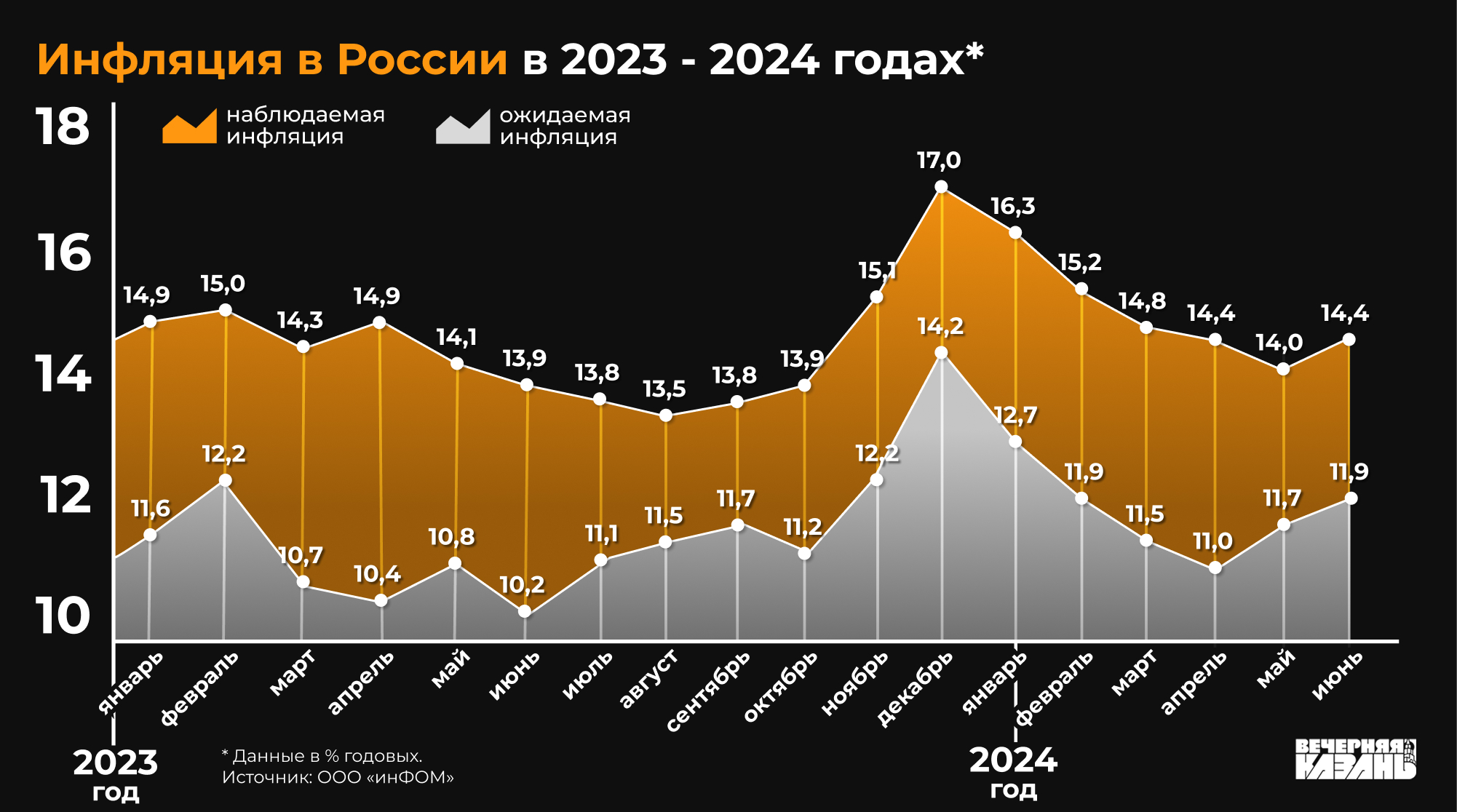 Игорь Кох предполагает, что ставка будет продолжать снижаться при условии сохранения тенденции снижения инфляции. При этом также будет снижаться и разница между ключевой ставкой и темпом инфляции. Он допускает, что к концу года можно ожидать ставку на уровне 11-12% при годовой инфляции 6-7%, что будет «намного более комфортно для бизнеса».