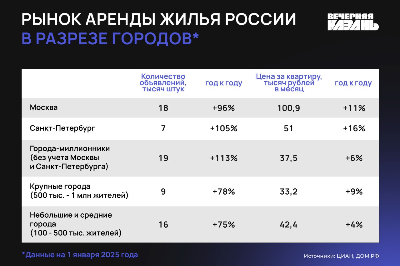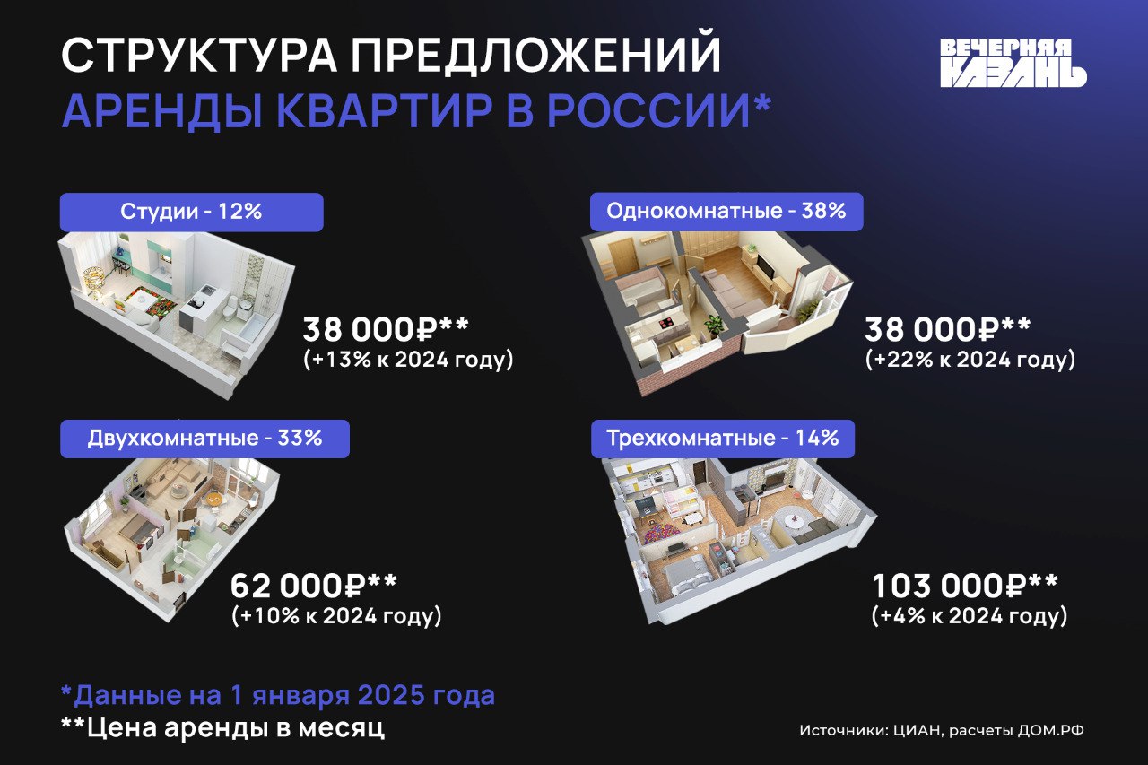 Это значительное увеличение объема предложений на рынке. В декабре количество предложений по аренде жилья в Казани достигло пиковых значений за последние 12 месяцев, и февраль продолжает эту тенденцию, констатирует он.