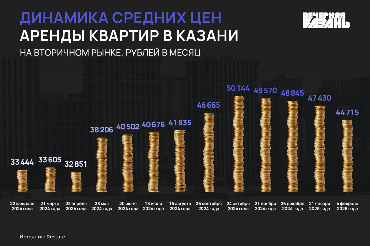 По оценке АН «Этажи-Казань» арендные ставки в этом году могут подняться в среднем на 20—30%. Наиболее дорогим съем жилья прогнозируется в июле-августе.