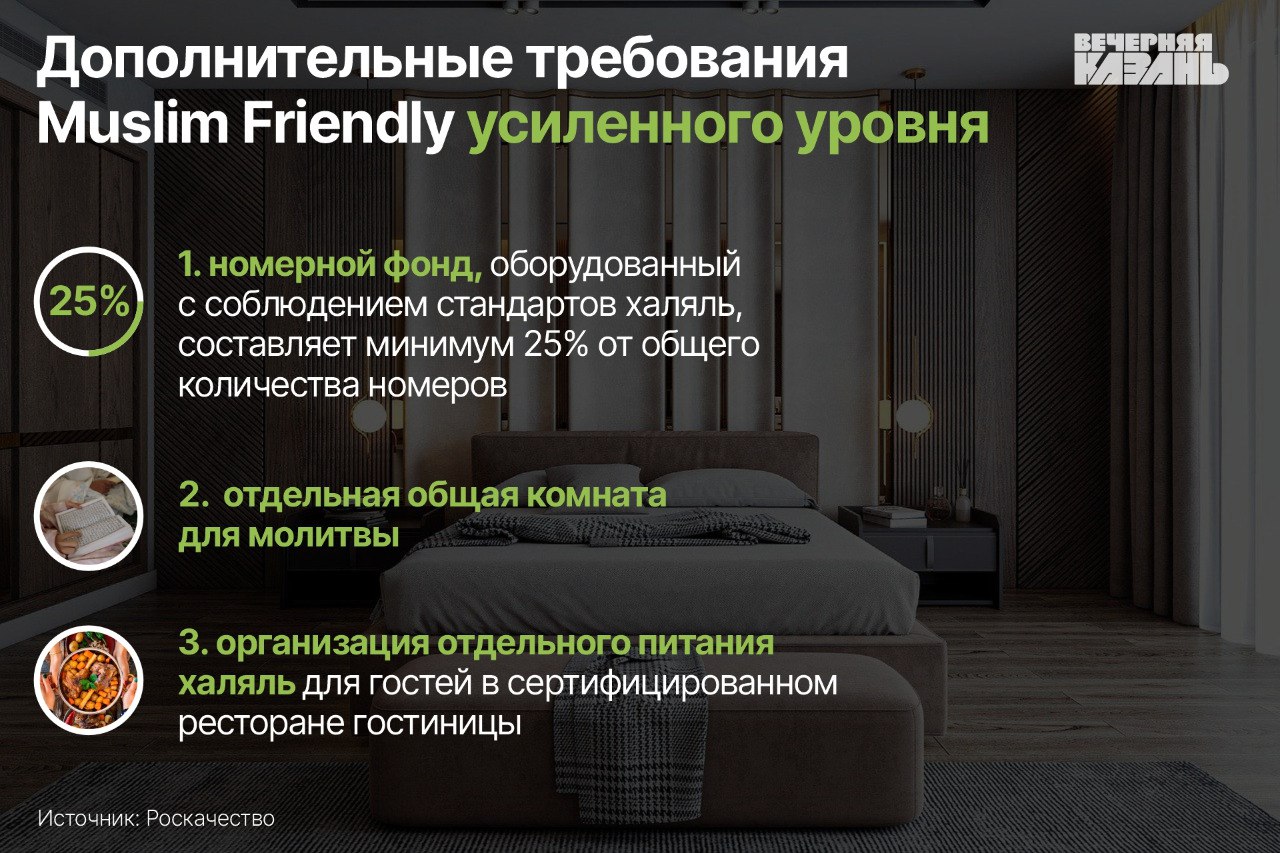Ему известно, что, к примеру, в отеле «Релита-Казань» под халяльные номера готовили целый этаж. Они были востребованы, когда проходили KazanSummit (в 2023 году получил федеральный статус и был переименован в KazanForum. — «ВК») и Всемирный конгресс татар. Собеседник издания обращает внимание на то, что сертификацию каждые два года нужно обновлять.