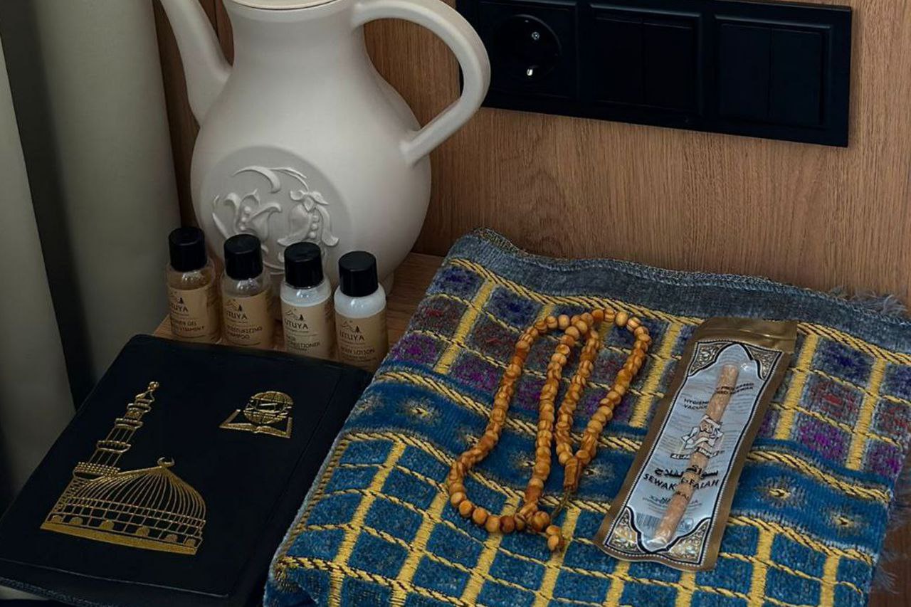 В частности, если известно, что должны поселиться люди, которые придерживаются норм халяль, из мини-бара убирают алкогольные напитки. Во-вторых, в номер предоставляют необходимый набор из корана, молельного коврика и кумгана. Также указывают направление на Мекку для молитв.