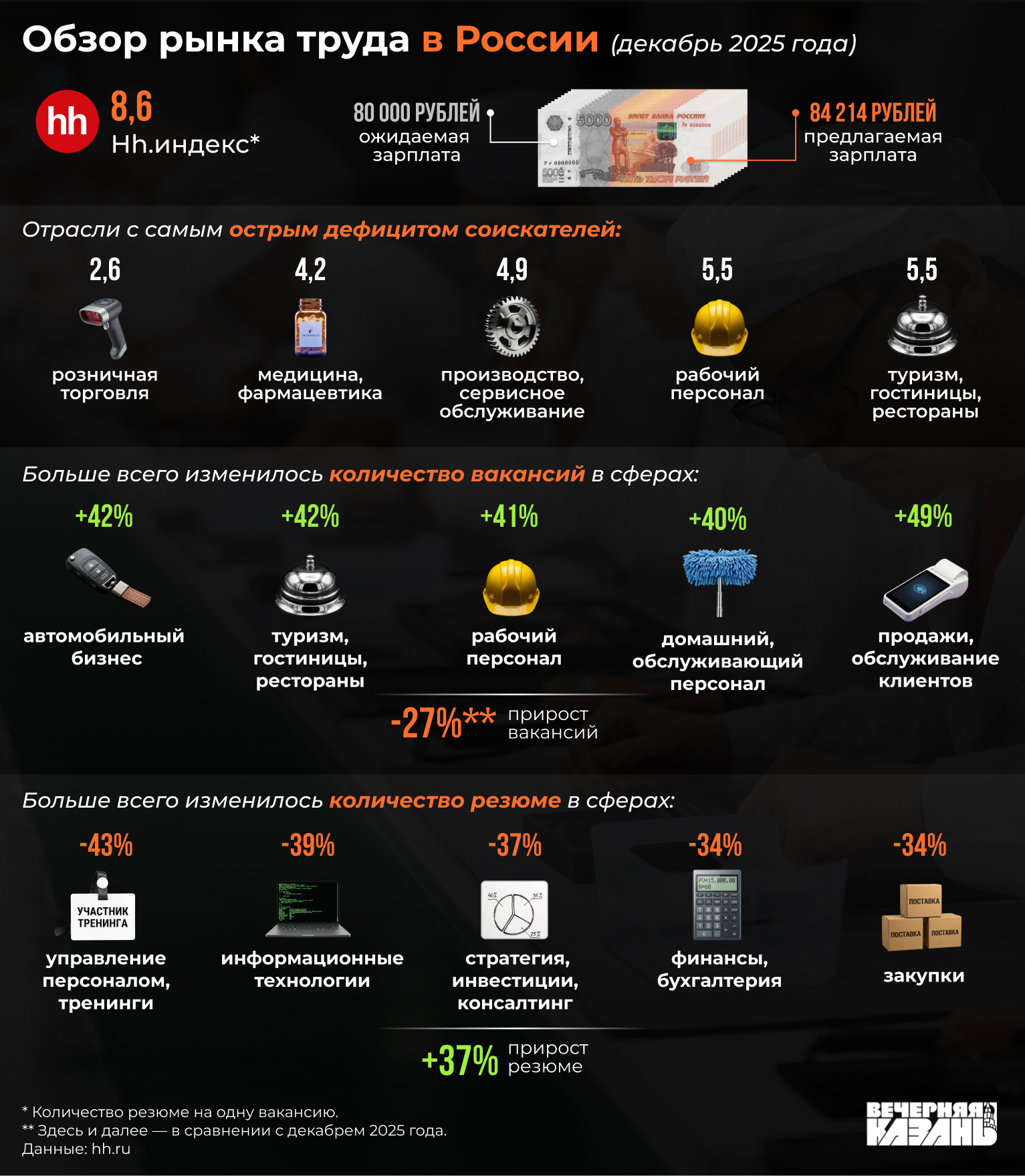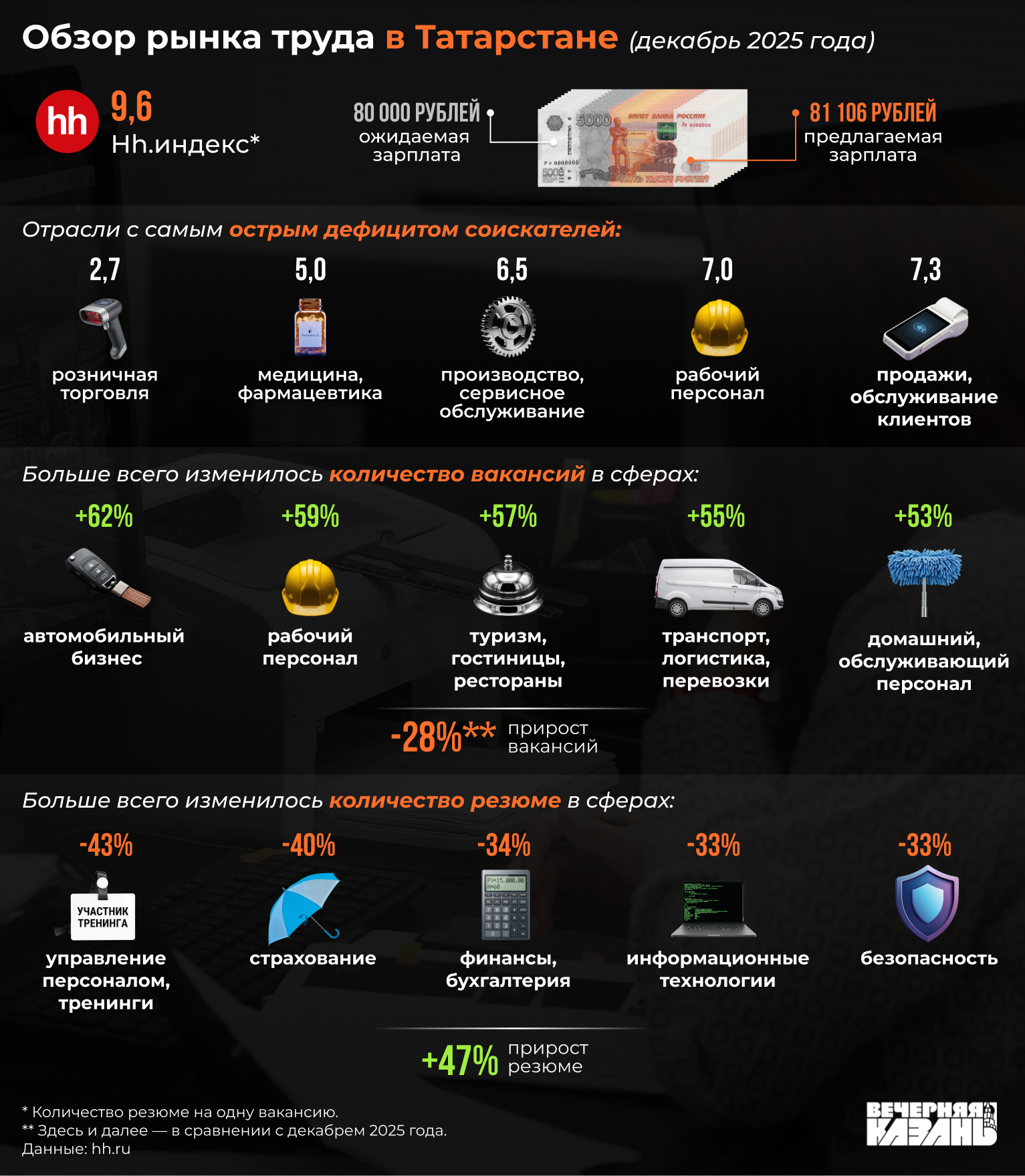 — Индекс hh.ru, показывающий соотношение количества резюме на одну вакансию, в декабре 2025 года составлял 8,6. В Татарстане этот показатель чуть больше — 9,6. Как вы оцениваете 2025 год для рынка труда? Какой была конкуренция?