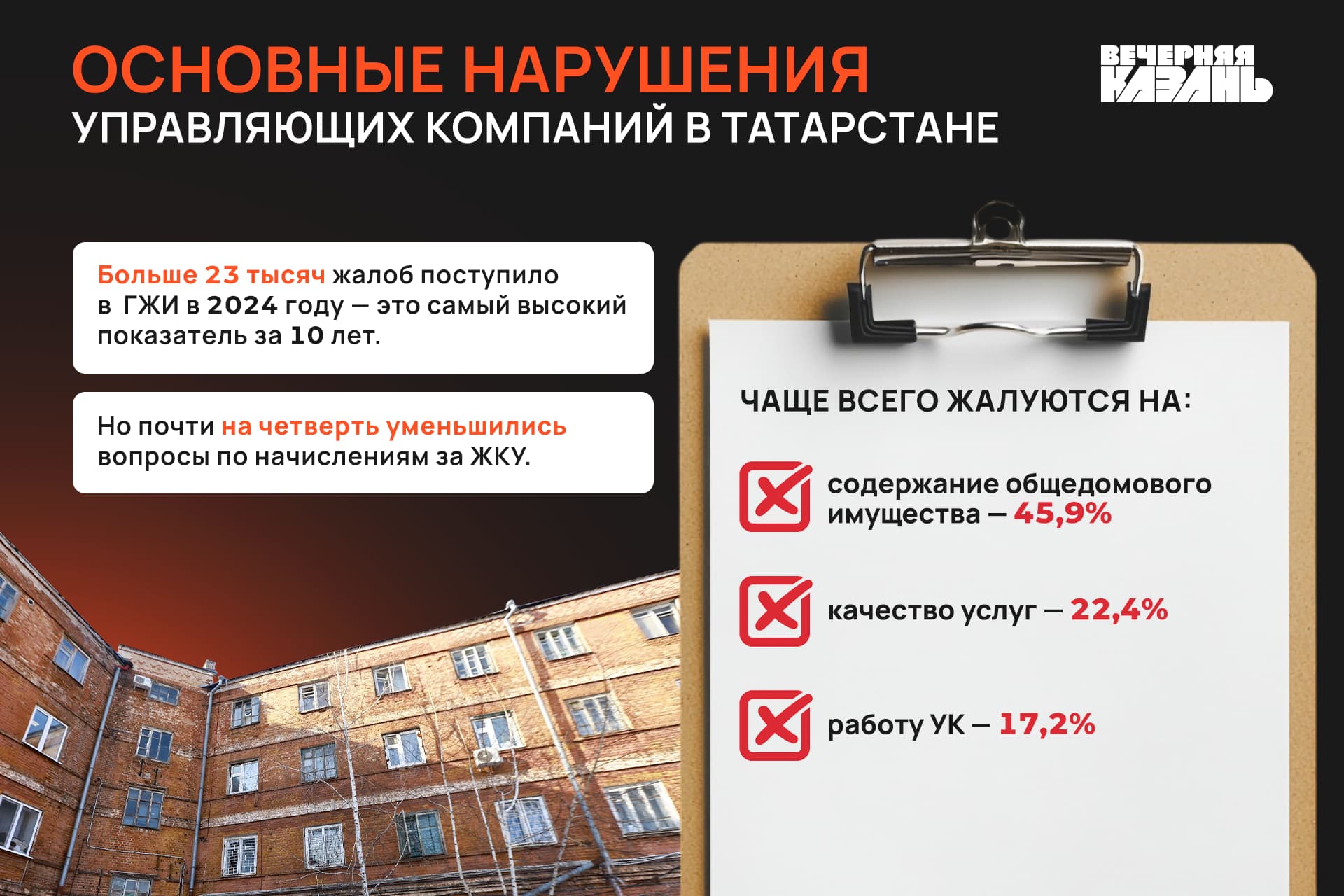К веянию времени можно отнести и пристальное внимание контролирующих ведомств (прежде всего республиканской Госжилинспекции) к управляющим компаниям. Например, директора УК Вахитовского района за 2024 год и неполных два месяца текущего года уже успели оштрафовать семь раз, в последний раз коммунальщиков оштрафовали на 55 тысяч рублей за игнорирование жалоб жителей. А директора УК «Заречье» за три последних месяца 2024 года привлекли к административной ответственности пять раз, ему назначили штрафов более чем на 200 тысяч рублей. В этом году в жилинспекции, судя по всему, останавливаться не собираются, в ведомстве объявили о намерении добиться дисквалификации руководителя УК «Уютный дом».