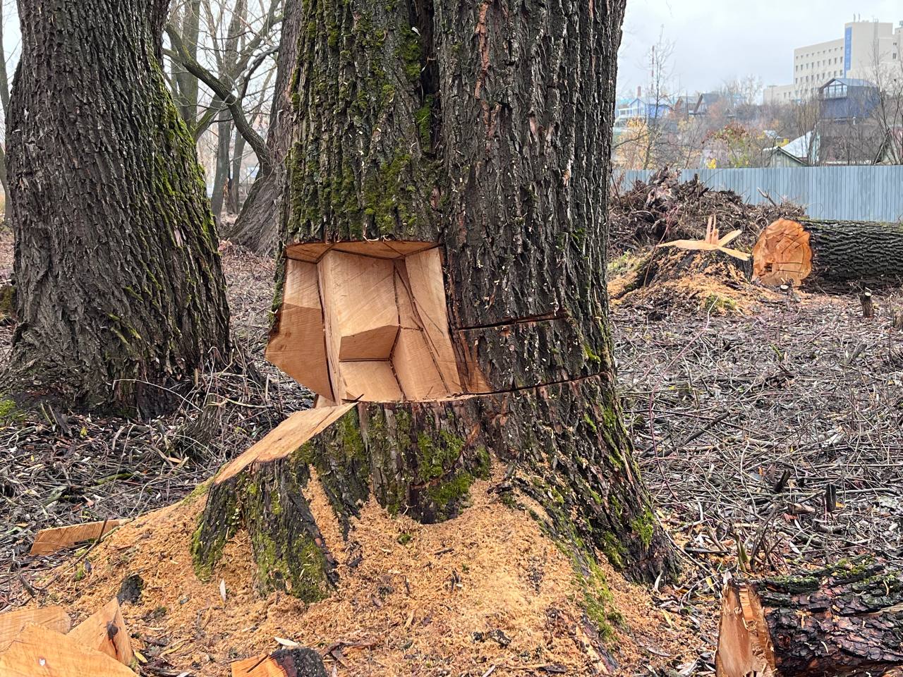 Позиция у властей разная: мэрия собирается обращаться в полицию, а Госкомитет по биоресурсам говорит, что никакого нарушения нет, вырубка была на территории СНТ.