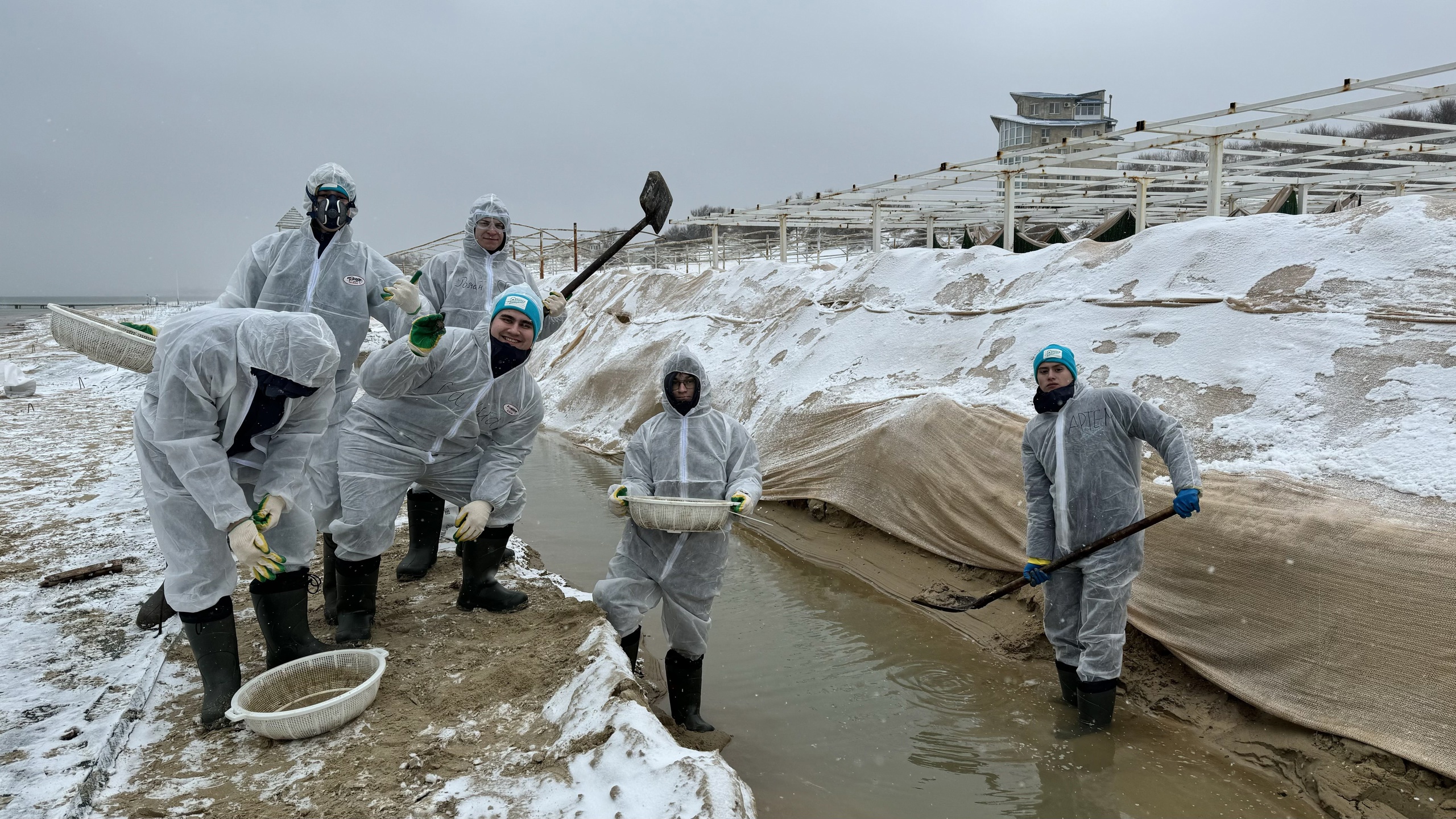 «Сегодня из-за погодных условий наш объем задач был небольшим: мы шли вдоль пляжа и сеяли песок на наличие мазута. За смену собрали почти три мешка», – рассказал волонтер Александр Щадилов.