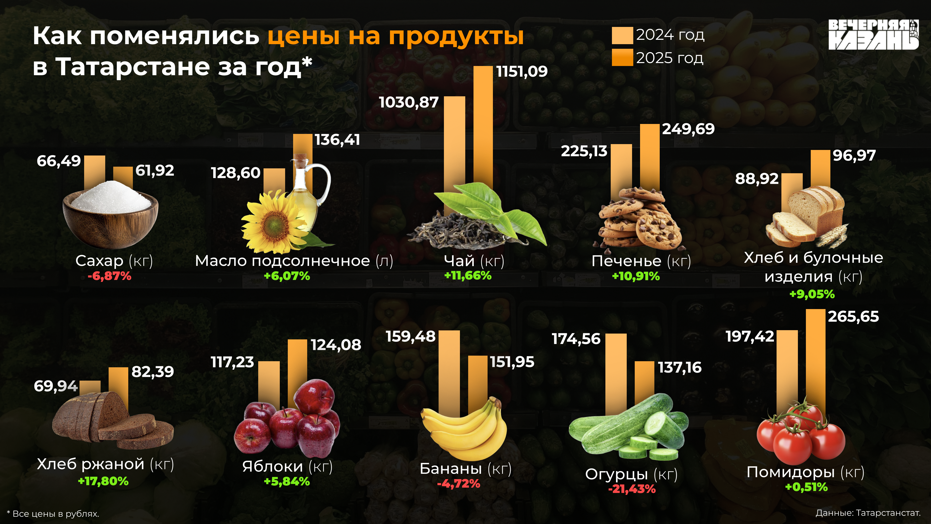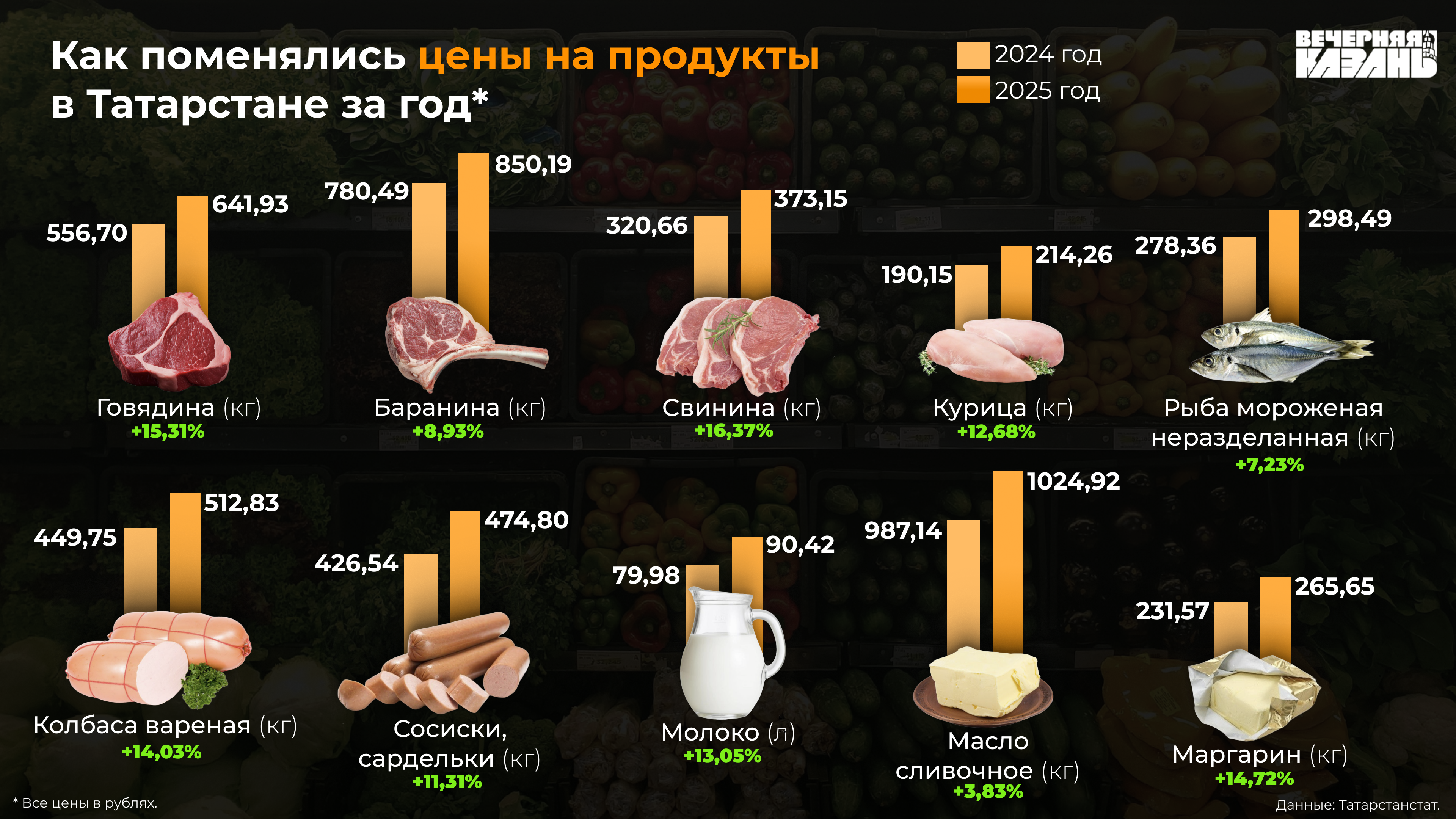 Мечты о дешевых продуктах: что дорожало сильнее всего в Татарстане в 2025 году