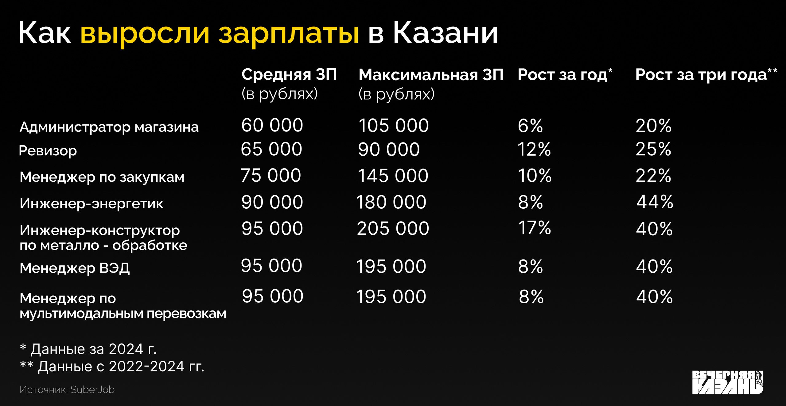 По данным Татарстанстата, за четыре месяца зарплаты в республике выросли на 20,9 процента, тогда как реальные доходы увеличились лишь на 10 процентов. Средняя зарплата в регионе превысила 80 тысяч рублей. В Казани же средняя зарплата с 2020 по 2025 год выросла с 50,7 тысячи до 99,8 тысячи рублей, из которых только в промышленности она выросла с 50,3 тысячи до 113,8 тысячи рублей.