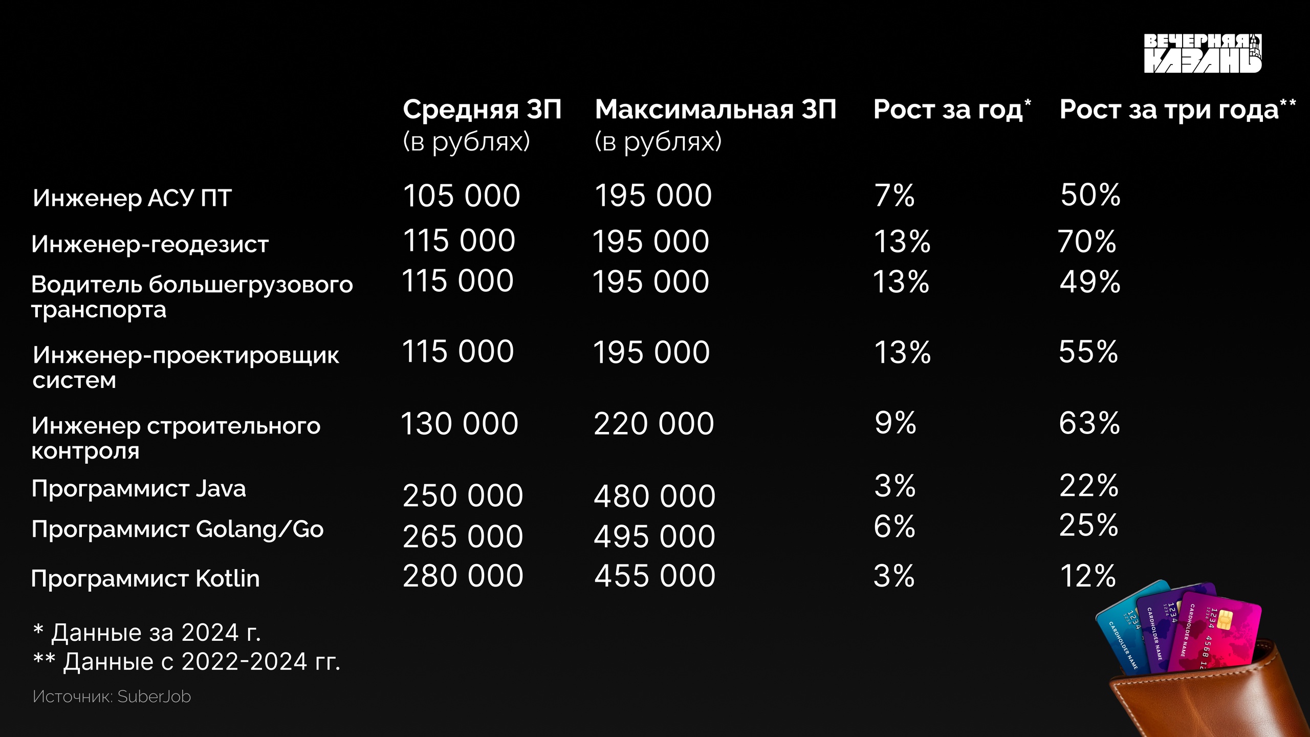 По данным онлайн-сервиса hh.ru, во втором квартале 2025 года медианная зарплата в казанских компаниях составила 75,8 тысячи рублей. В сфере информационных технологий медиана достигает 97 тысяч рублей.