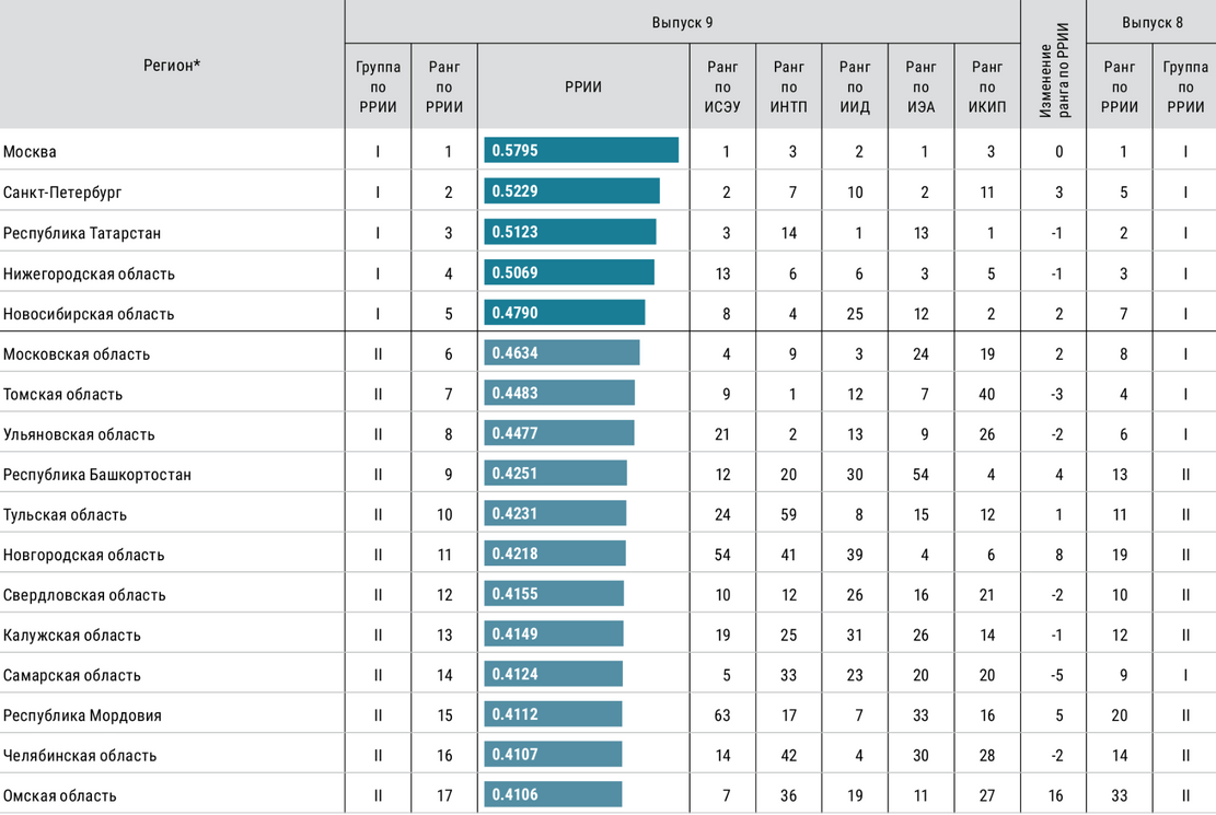 Республика оказалась на первом месте благодаря высокой активности и результативности бизнеса, второе место заняла Москва. Также Татарстан лидирует по качеству инновационной политики и входит в пятерку регионов по технологическим и нетехнологическим инновациям. Помимо этого регион является одним из лидеров по применению отечественных разработок, заняв третье место по социально-экономическим условиям для инновационной деятельности.