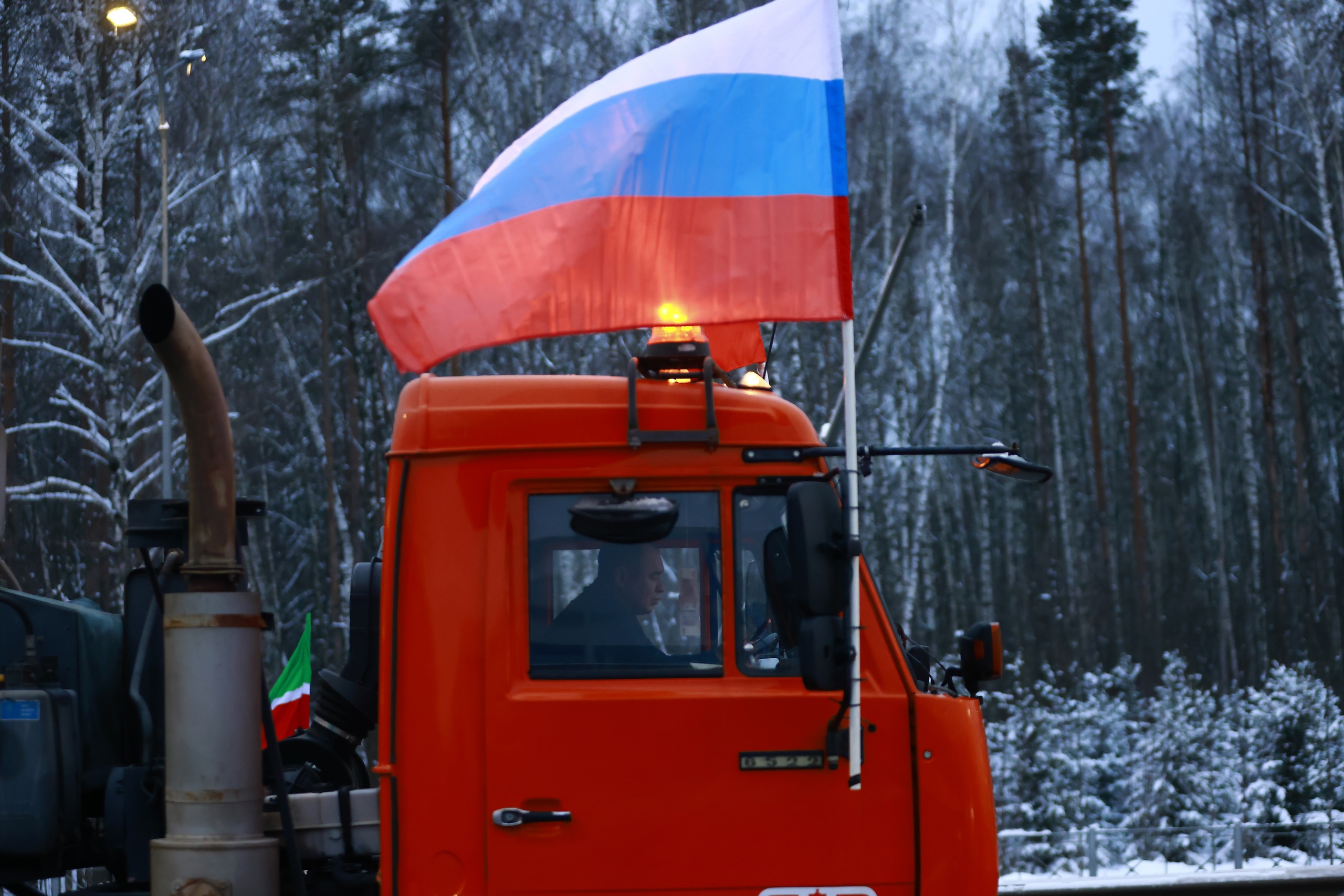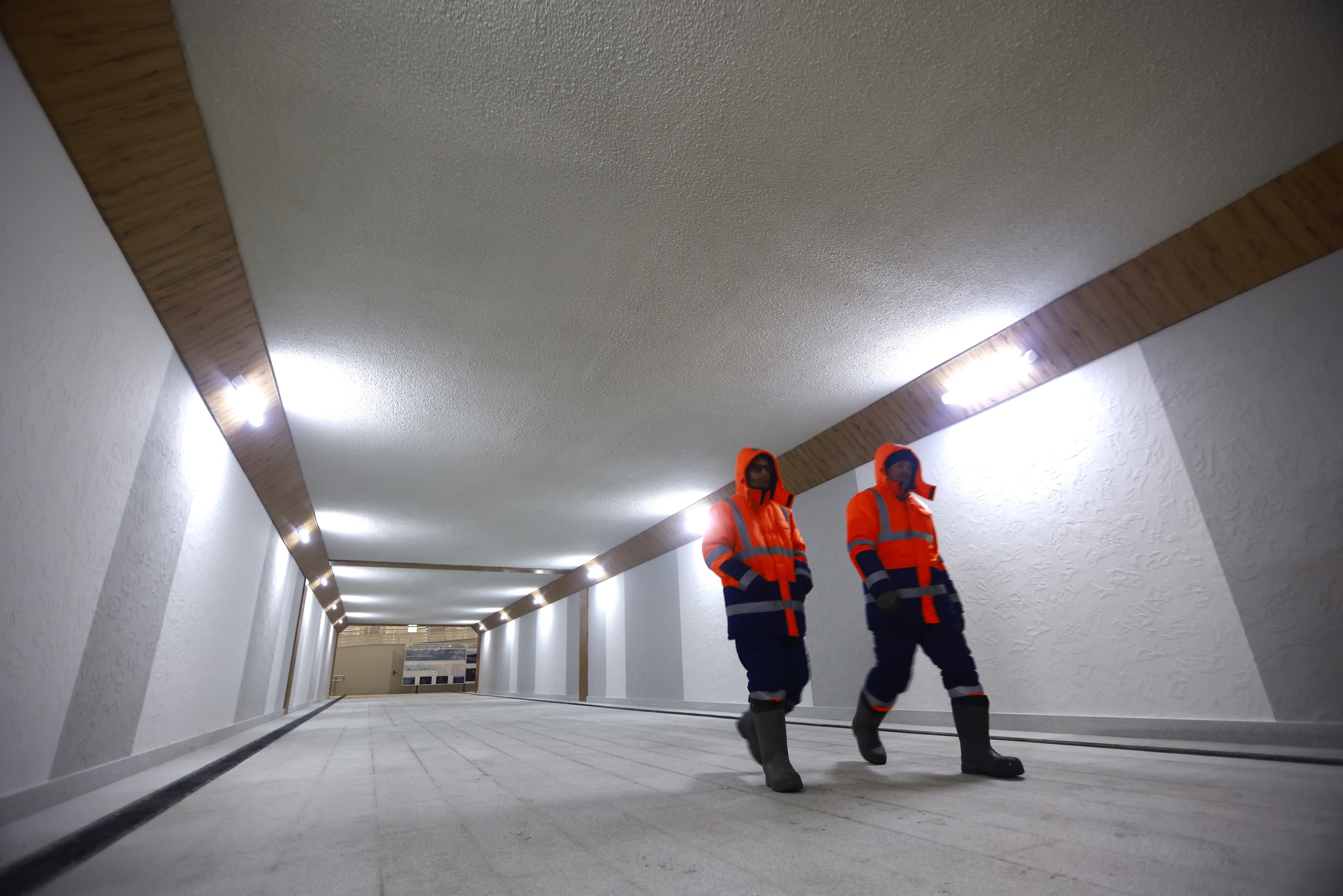 После всех радостных слов и благодарностей пришла пора проводить торжественную церемонию открытия. Не останавливая поток машин от СК «Олимпиец» запустили автобусы и стройтехнику с флагами России и Татарстана. На новых надземных переходах включили подсветку. Горьковское шоссе официально открылось.