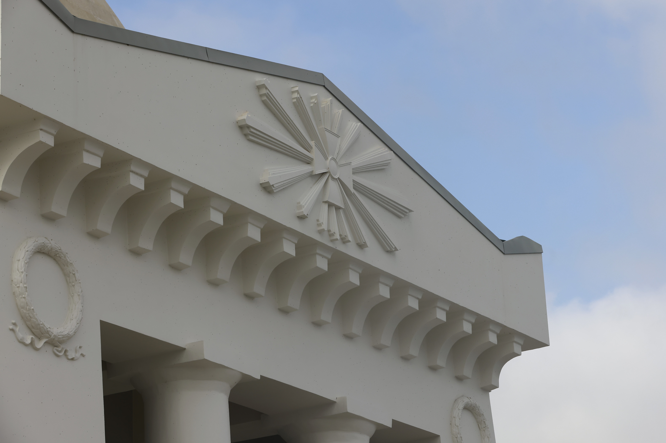 В процессе реставрации специалисты долго дискутировали, как защитить объект от постоянных климатических нагрузок – ветра, воды, повышенной влажности. По словам Гущина, решили отказаться от фальцевой кровли, а также дополнительно закрыли стены природным известняком.