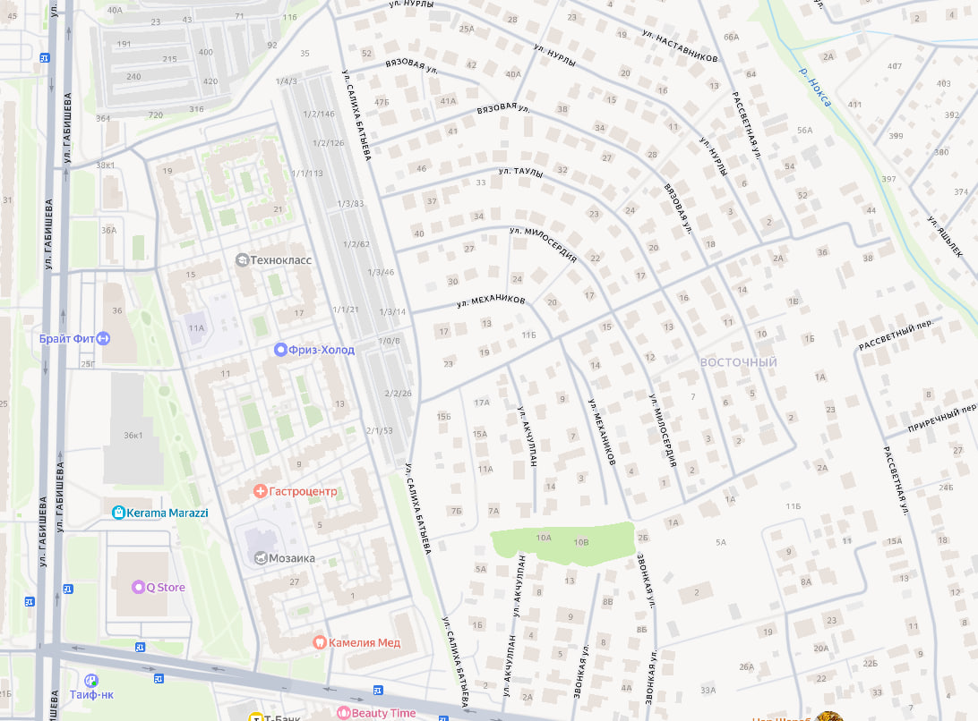 Кроме того, местные жители ссылаются на нормативные документы, согласно которым улица Салиха Батыева должна выходить на улицы Кул Гали с одной стороны и Габишева с другой. Но выход на последнюю закрыт, поскольку сейчас участок имеет тупиковое развитие, так как поселок Восточный с противоположной стороны закрыт стройкой и, по данным жителей, там будет очередной ЖК с закрытой придомовой территорией.