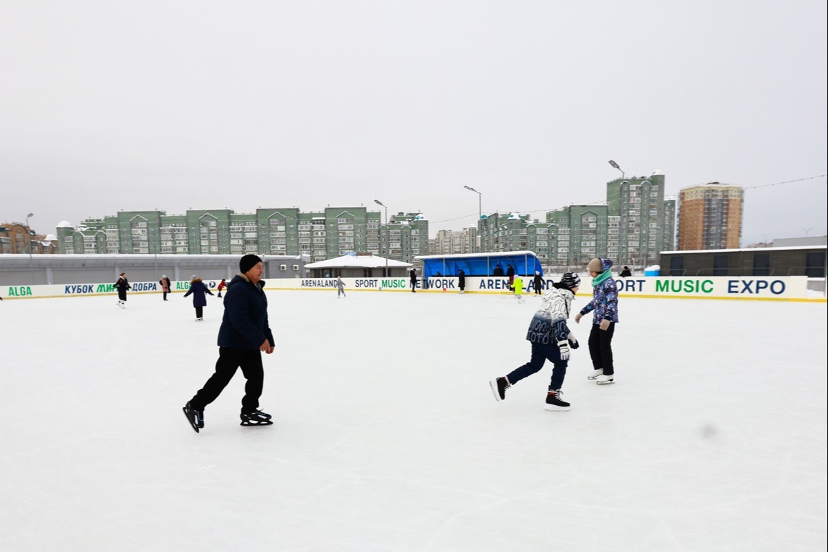 Традиционная площадка в Дербышках. Огромный стадион, который зимой превращается в ледовое поле. Сюда часто приезжают семьями, чтобы насладиться масштабом и свежим воздухом. Дети до семи лет и люди с ограниченными возможностями здоровья могут кататься бесплатно, что делает эту площадку социально ориентированной и доступной для широкой аудитории.