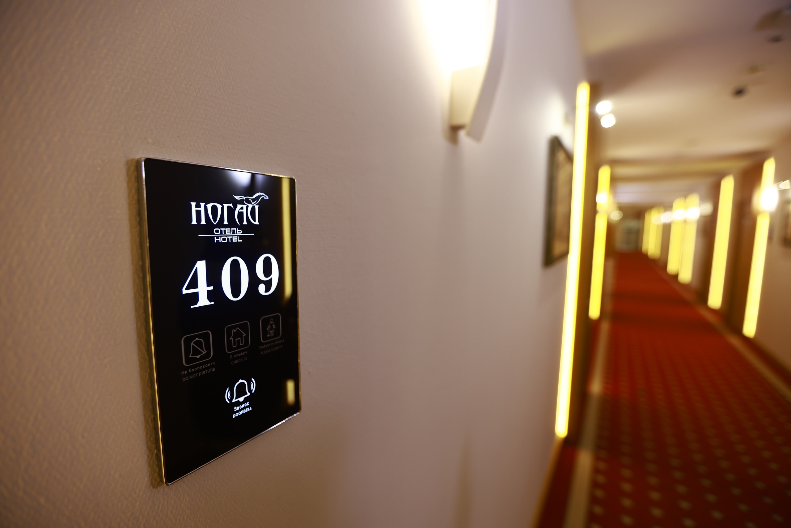 В отеле «Ногай», который напоминает по внешнему виду раскрытую книгу, остановятся две делегации. Когда-то в этом здании распологалась типография, где встречались члены Союза писателей. Книги, которые находятся в каждом номере, отсылают к истории объекта культурного наследия. Интересно, что именно здесь большое внимание уделяют цифровизации. Отель придерживается экологического менеджмента и уходит от всей полиграфии. У каждого номера расположено табло, на котором отображается нужна ли здесь уборка или постояльца лучше не беспокоить. Каждый сотрудник отеля перед входом в номер обязан нажать на кнопку «звонка», чтобы убедиться, что в комнате никого нет.