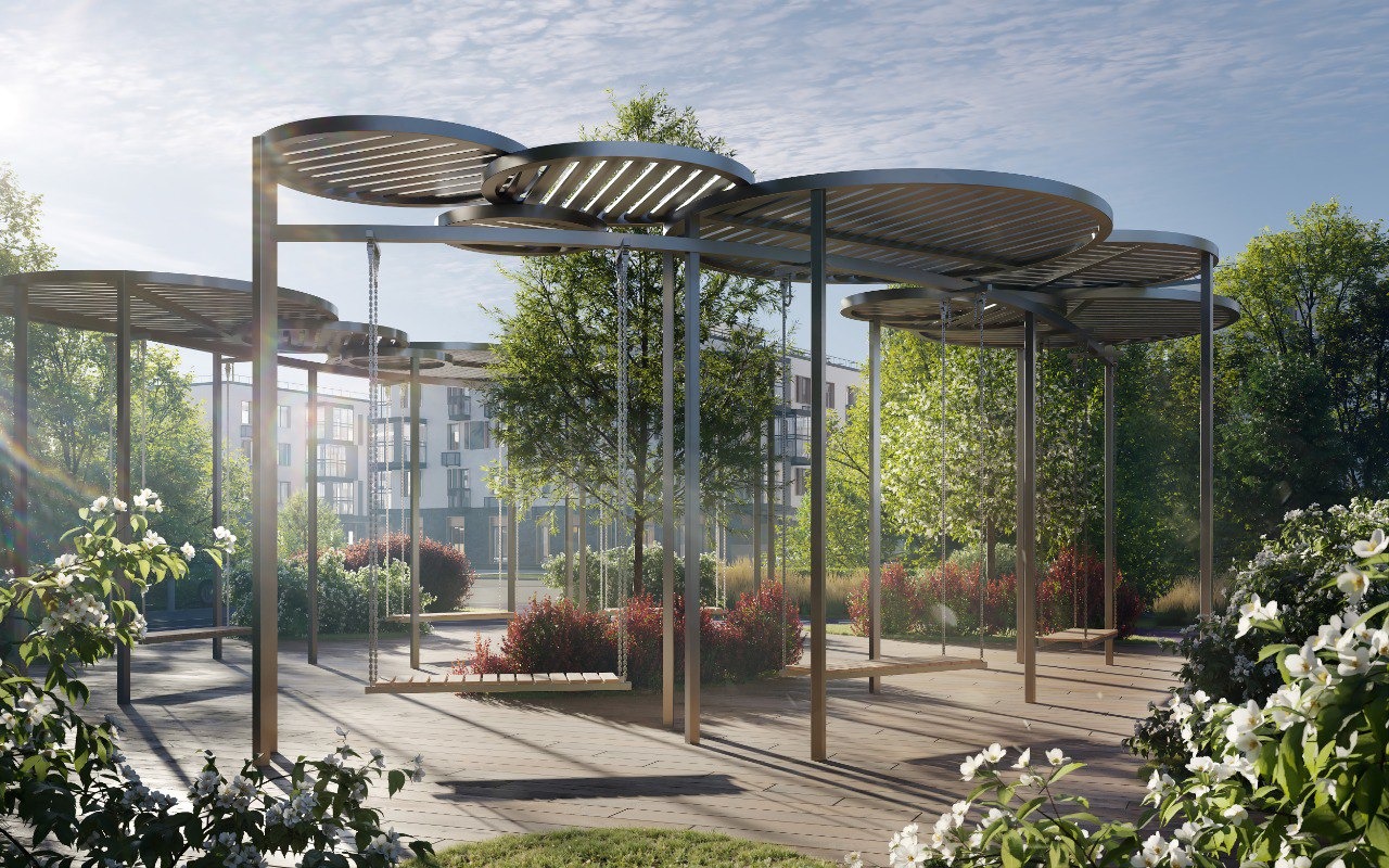 Территория комплекса продумана до мелочей: здесь и дополнительные игровые зоны, для тихого отдыха — «карманные» парки и скверы с сотней видов лиственных и хвойных насаждений. Проект предусматривает открытие семейного игрового парка площадью 1,2 гектара. Сквер первой очереди будет представлен событийной площадью, зонами для отдыха и променада, активными игровыми и спортивными площадками. Здесь жители смогут комфортно отдыхать в одиночку, в семейном кругу или с детьми/внуками.