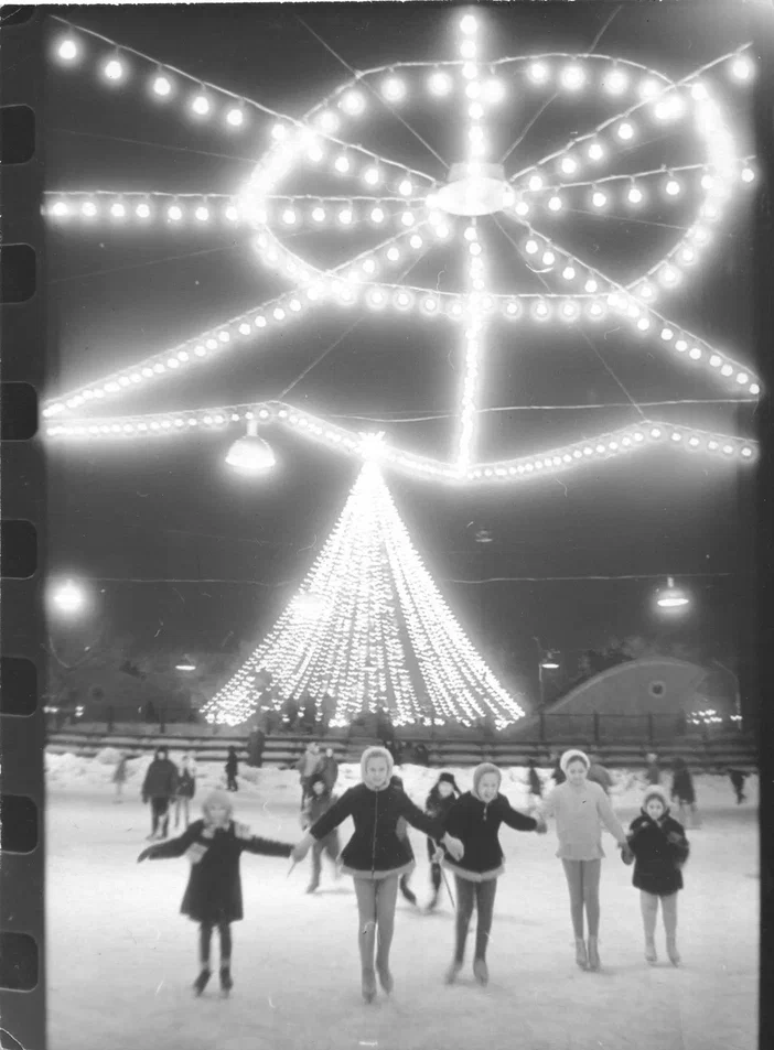 1974 год. Ледовый городок и каток всегда были любимым местом детворы в праздники.