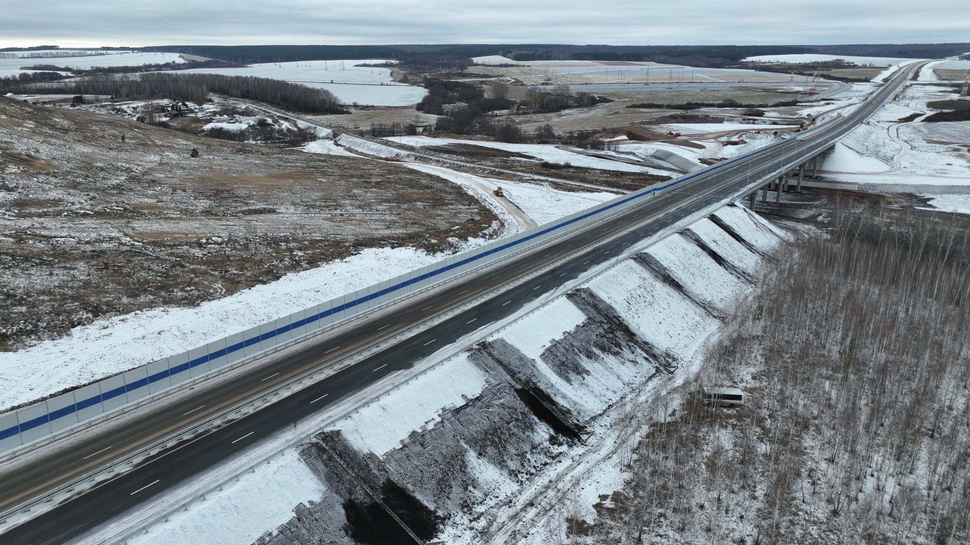 Главный показатель для водителей — время в пути сократилось примерно на час. Сейчас дорога заканчивается, немного не доезжая до Альметьевска, — чтобы попасть в нефтяную столицу, нужно свернуть на временный въезд.