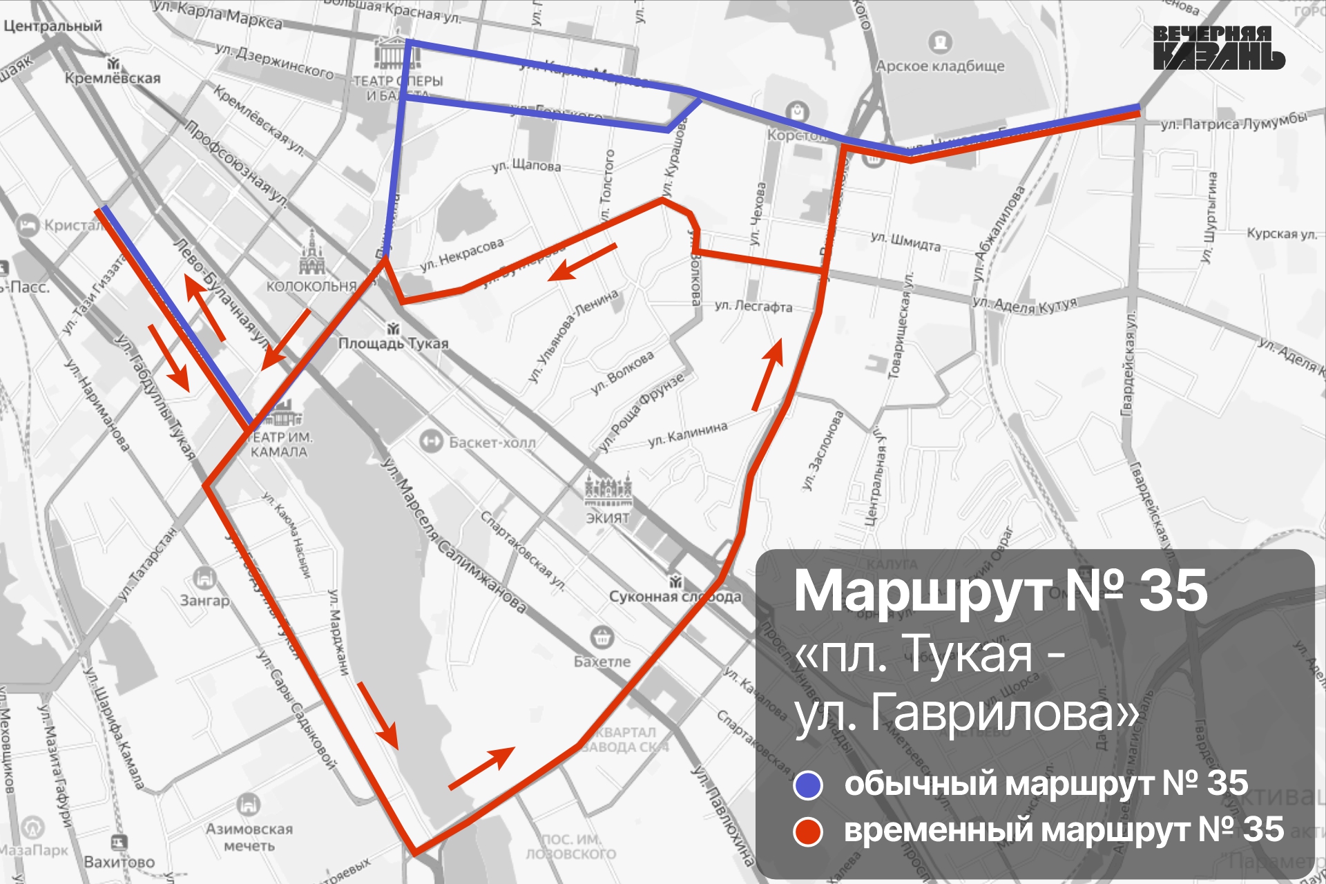 Ранее заместитель руководителя исполкома Ильдар Шакиров сообщал, что автобусы, троллейбусы и трамваи будут ходить по графику рабочего дня. Но схему движения многих маршрутов изменили. Большинство единиц общественного транспорта будет объезжать центр из-за перекрытия улиц.