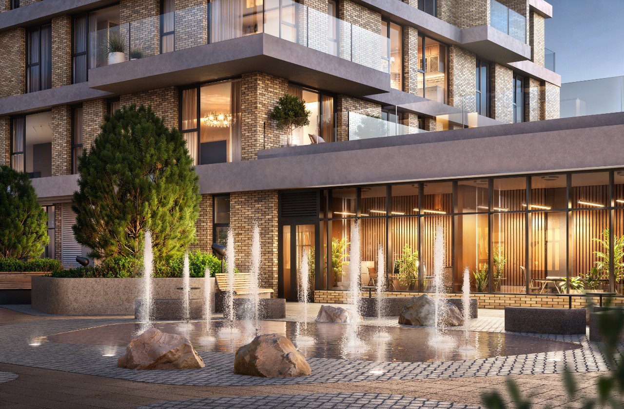 Вода в городской среде воспринимается как символ уюта и гармонии, а её наличие превращает пространство вокруг домов в полноценную рекреационную зону. Такой элемент одновременно влияет на эмоциональное состояние жителей, улучшает экологические характеристики территории и выгодно подчёркивает высокий уровень проекта.