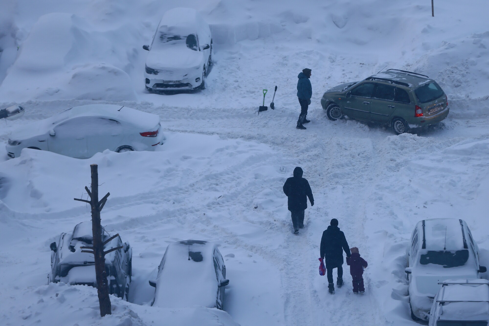 Снег убирают даже ночами, но осадков все равно очень много. Поэтому на помощь выходят местные жители.