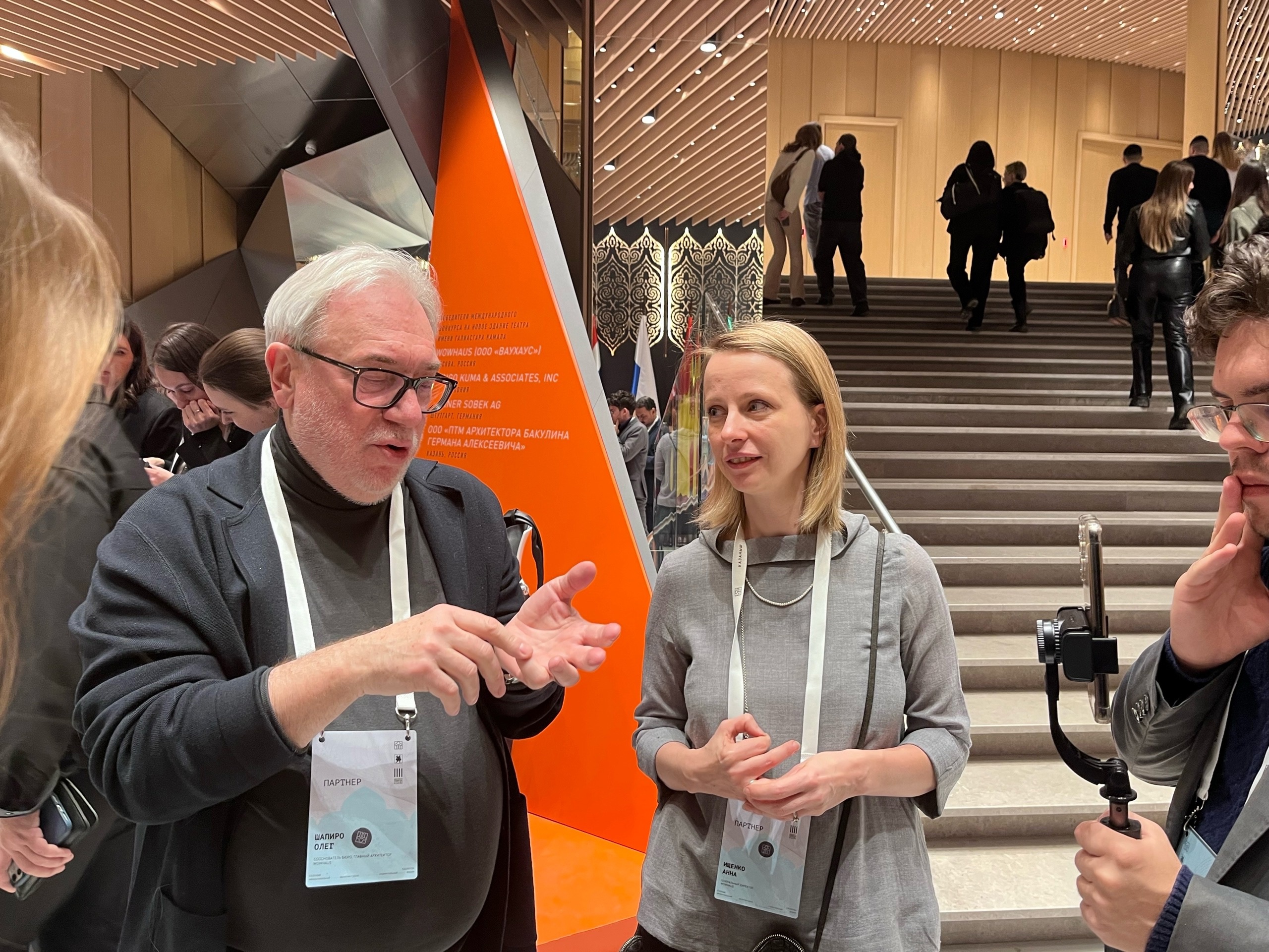 Шапиро рассказал, что новое здание театра Камала — это аллюзия на старое здание. Они очень похожи, однако бетонная конструкция создает иллюзию недоступности, в отличие от нового зеркального здания, который прозрачен и открыт.