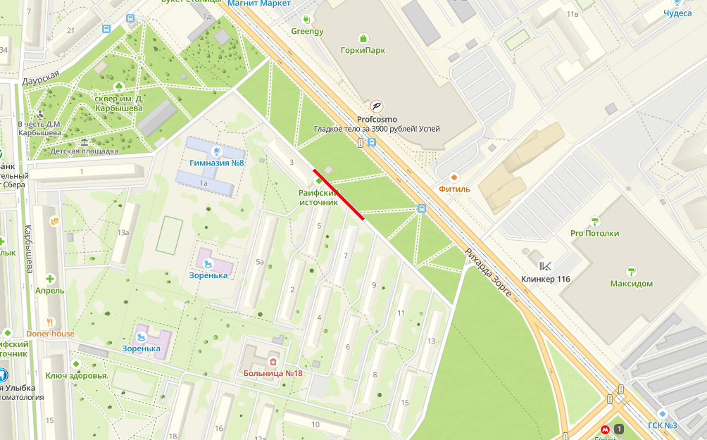 С 27 мая по 30 июня полностью ограничат движение на участке дороги рядом с домами № 5 и 7 по улице Зорге.