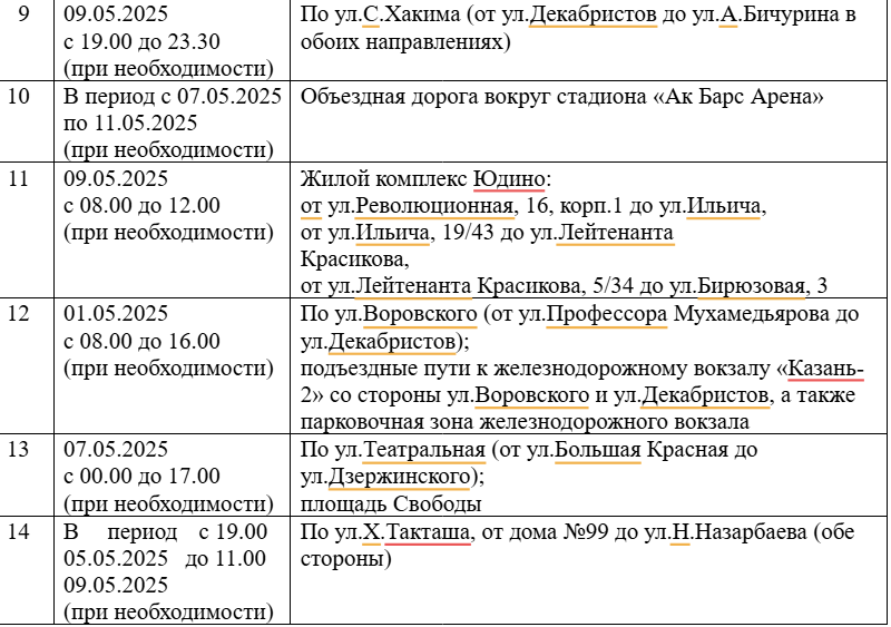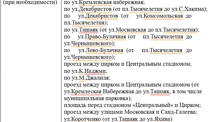 Помимо этого, в списке улицы в центре города, в Юдино, около стадиона «Ак Барс Арена», в Московском и других районах.