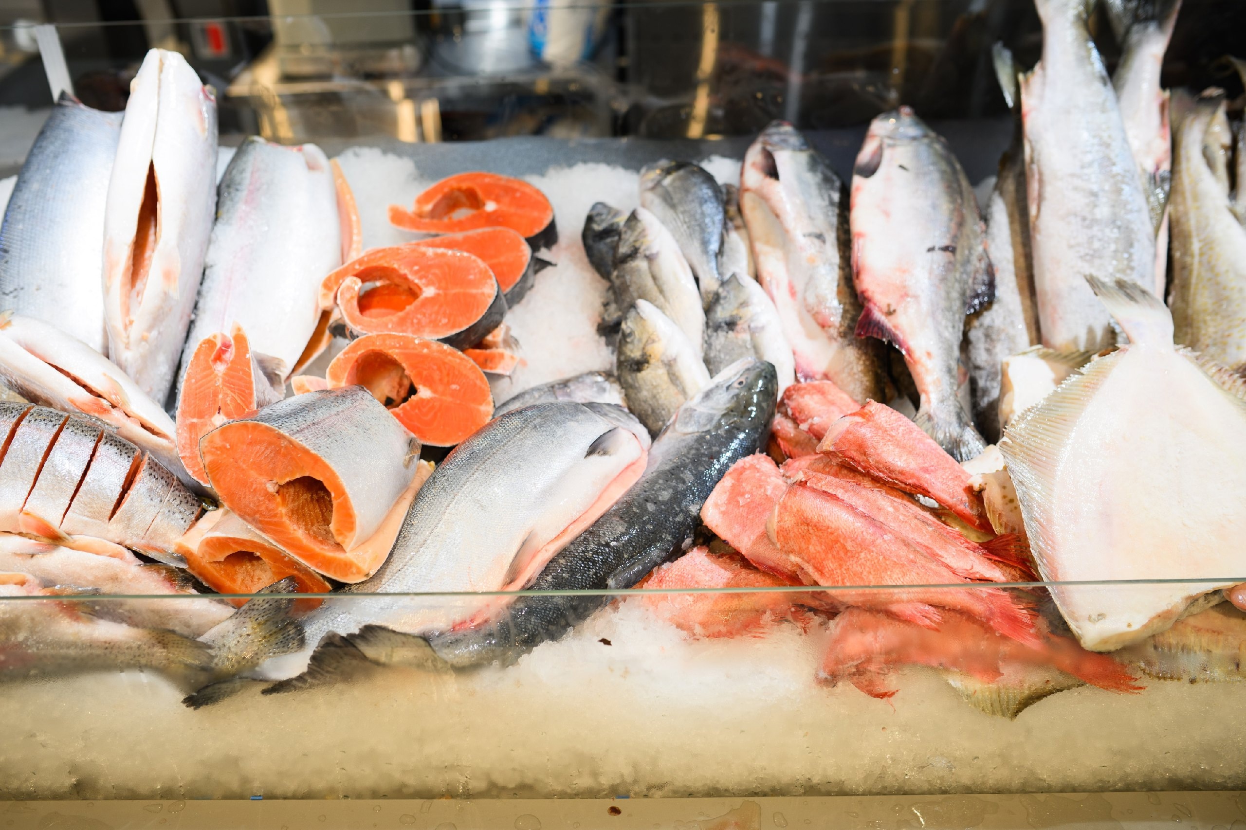 Гости могут приобрести свежую рыбу прямо из аквариумов, морепродукты, икру, свежее мясо, фрукты, овощи, зелень и многое другое.