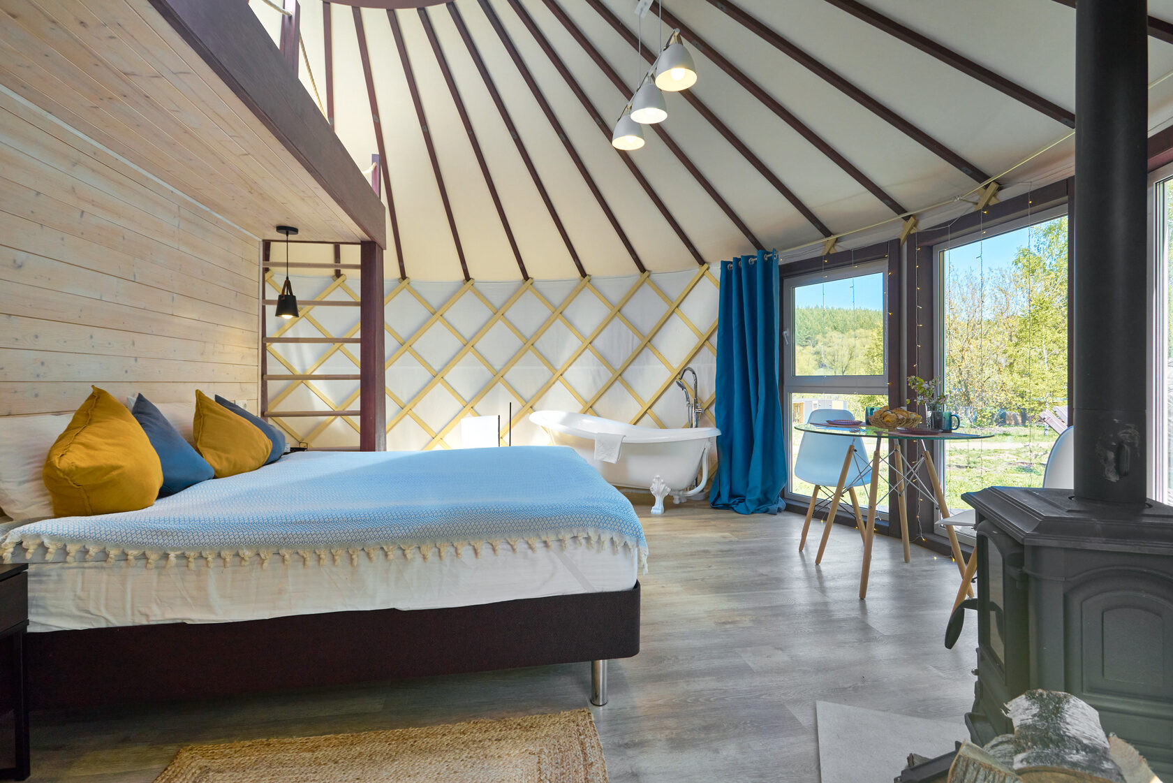 Глэмпинг Yurt Resort расположился всего в 25 километрах от центра Казани, в лесу, около искусственного озера. Комплекс предлагает гостям оригинальный опыт: проживание в настоящей юрте, оборудованной в современном стиле. Аутентично, но со всеми удобствами.