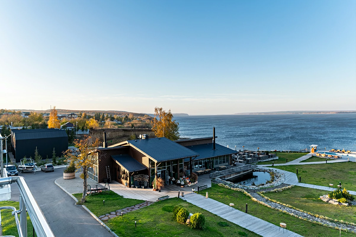 Комплекс всего в 25 километрах от Казани предлагает гостям уютные домики, интерьер которых можно выбирать под настроение. В номерах в стиле «Утро» преобладают тёплые светло-жёлтые оттенки. Домики «День» выполнены в светло-зелёной цветовой гамме. «Вечер» отличается розовым цветом, ассоциирующимся с закатами на Волге, а «Ночь» оформлена в нежно-синем цвете. В домиках есть все удобства, а также панорамные окна с видом на Волгу. Из них также открывается прекрасный вид на звёздное небо над рекой.