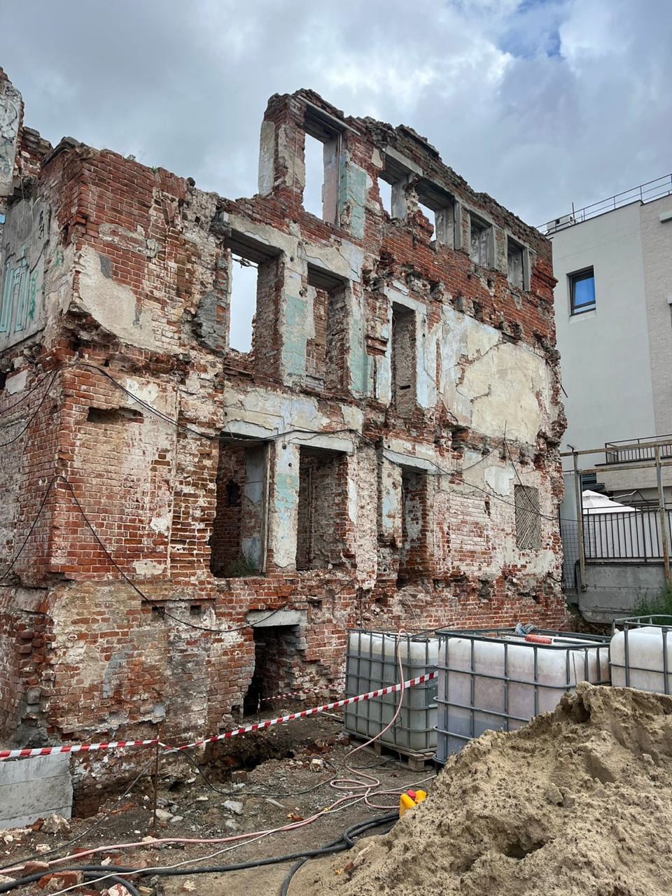 В зданиях уже демонтированы разрушенные элементы стен, а также усилен фундамент. В строении на Баумана, 34 работники убрали прогнившие деревянные конструкции и бетонные перекрытия советского периода, аварийную арку проездных ворот.