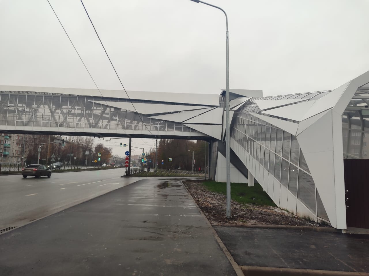 На участке от улицы Музыкальной до федеральной трассы М-7 «Волга» построили современный надземный пешеходный переход закрытого типа с полным остеклением. Особое внимание уделили доступности — переход оборудован лифтами и пандусами для маломобильных граждан.