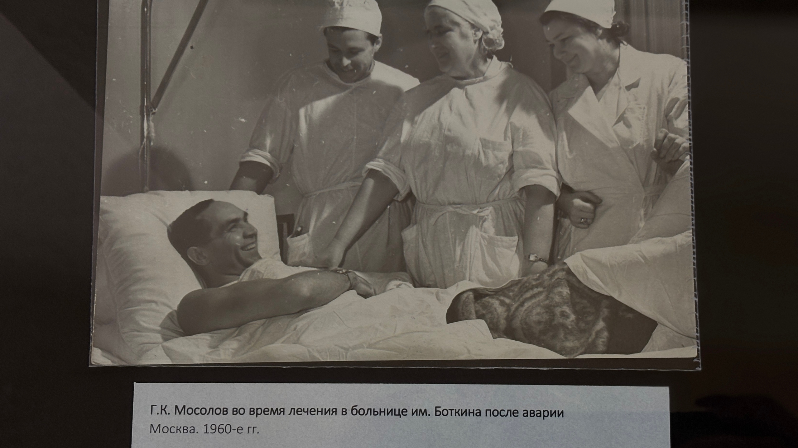 В экспозиции представлены личные вещи Г.К. Мосолова (например, скафандр для высотных полетов с гермошлемом), архивные документы и фотографии из фондов НМ РТ. На одном из снятых в Казани в 1970-х годах снимков вместе два Героя Советского Союза: Михаил Петрович Девятаев и Георгий Константинович Мосолов с детьми. На другой – летчик-испытатель рядом с генеральным секретарем ЦК КПСС, руководителем Советского Союза Л.И. Брежневым.