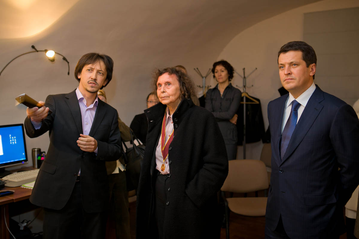 - В начале 2010-х я работал в Центре современной музыки Софии Губайдулиной, где создал экспериментальную лабораторию творческих и социальных технологий. Суть в том, что творчество превращалось в некий социальный эффект, поскольку я работал преимущественно с людьми с незаконченным музыкальным образованием либо вообще без него, но которые тянулись к музыке. И мы вместе создавали различные проекты. И однажды нам объявили - София Асгатовна в Казани и посетит Центр современной музыки, который, собственно, некогда был ее семейным домом. И вот - она зашла... Первое впечатление (помню его до сих пор) - теплая рука, которую я пожал при знакомстве. Начал ей показывать все, что мы делаем, наши импровизационные моменты, видео. Ее наша работа очень заинтересовала, и София Асгатовна поделилась, как это у нее происходило во время работы в Москве, об опыте сочинительства музыки во время импровизации. Есть такой метод, сочинительство во время игры, София Асгатовна как раз об этом и рассказывала. А я говорил, что в основном работаю с молодежью не через официально принятые методы, а пытаюсь сразу погрузить людей в творчество на основании неких блоков информации. Она одобрила! На память о визите Софии Асгатовны в казанский Центр современной музыки в 2011 году сохранилась вот эта фотография.