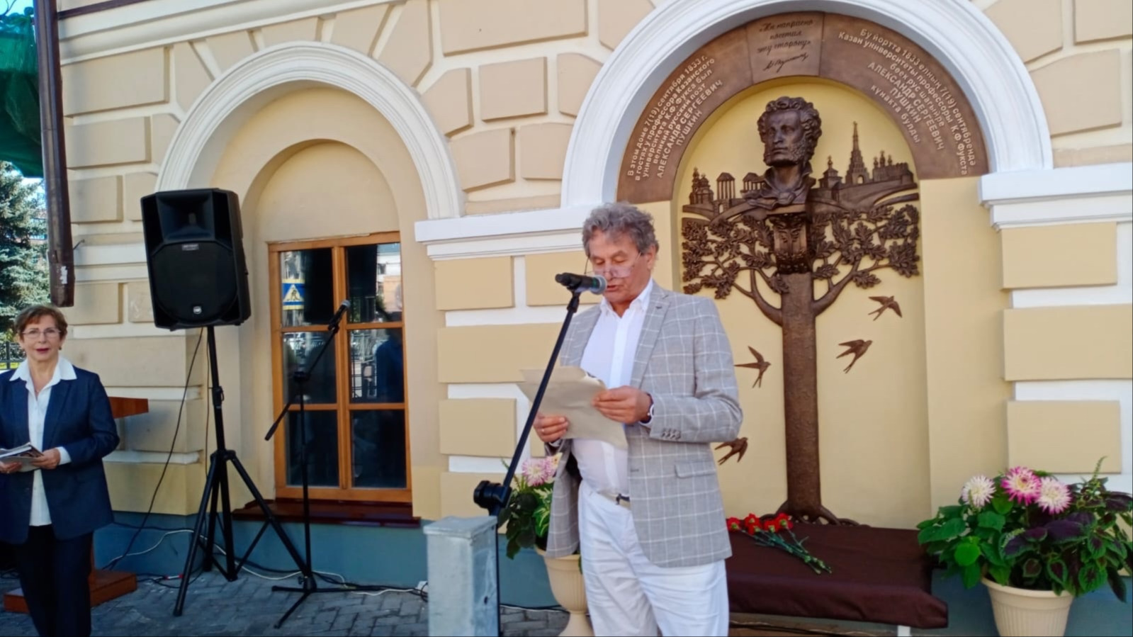Торжественное открытие памятной композиции состоялось на улице Московской у дома номер 58. Здесь 225 лет назад Пушкин провел сентябрьский вечер в гостях у профессора Казанского императорского университета Карла Федоровича Фукса.
