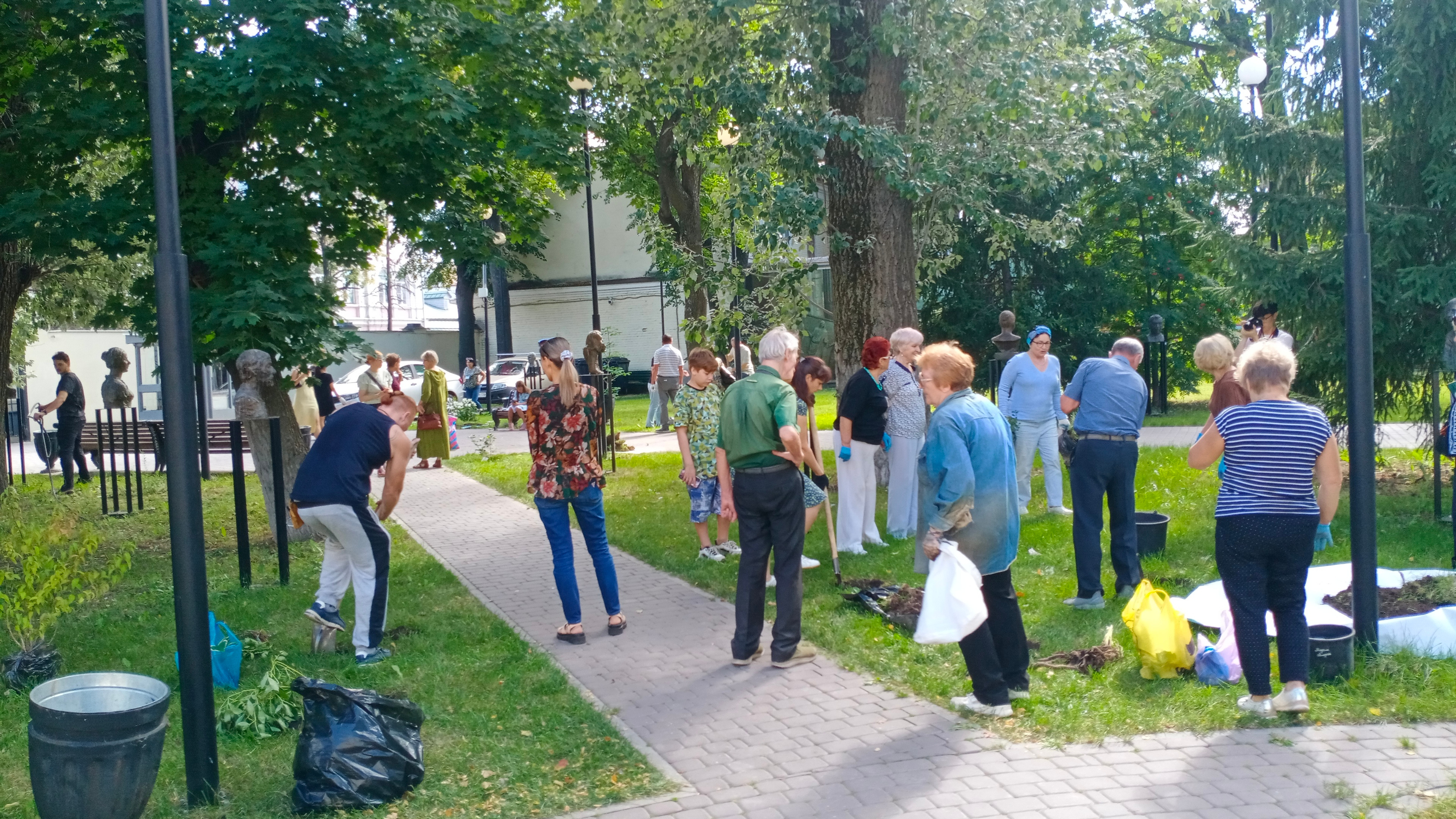 Сам процесс формирования «Белого сада» прошел без помпы, то есть инфошумихи и соответствующей говорильни. В назначенный час у музейных ворот собрались несколько десятков человек, все как один с растениями. Процедура высадки саженцев прошла деловито и заняла около двух часов. Причем в парке в это время звучала элегическая музыка, журчал включенный фонтан, накрывался чайный стол. Словом, атмосфера настраивала.