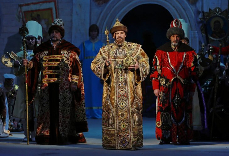 После воодушевляющей церемонии публика сосредоточилась на фестивальном спектакле «Борис Годунов». С первых же тактов зрителей захватила бессмертная музыка Модеста Мусоргского. Кстати, в 2024 году этой народной музыкальной драме исполнилось 150 лет, но каждый раз она звучит как откровение.