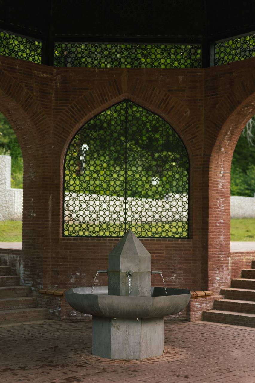Одновременно обновили павильон у источника, куда многие приезжают за водой. Построенная в 1990-е предыдущая конструкция за почти тридцать лет сильно обветшала, кирпичная кладка пошла трещинами, начали рушиться ступени. Приступая к проектировке нового облика павильона архитекторы проектной группы «8 линий» опирались на исторические материалы о древнем городе Биляр, консультируясь с историками и археологами.