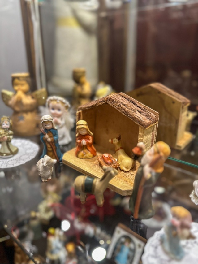 В потайной «чемоданной» комнате Боратынских обновилось оформление. Теперь в витрине спрятаны рождественские игрушки, из них сложился замечательный сюжет: это сказочный рождественский вертеп.