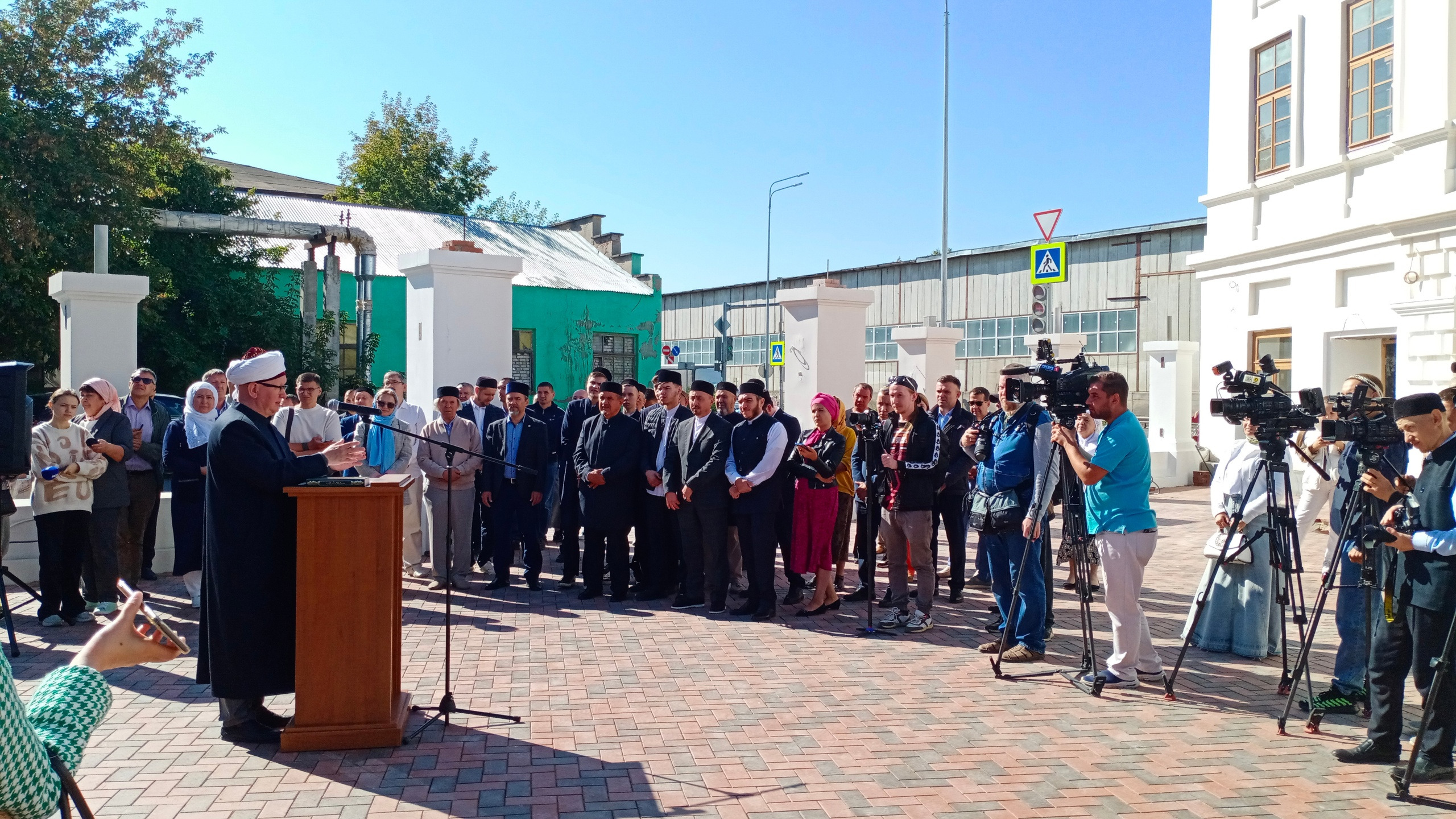 На торжественное мероприятие собралось духовенство во главе с муфтием ДУМ РТ Камилем хазратом Самигуллиным, исполнительный директор Фонда поддержки развития культуры при раисе РТ Нурия Хашимова, другие официальные лица и неравнодушная общественность. Событие действительно незаурядное: спустя 95 лет после закрытия безбожной советской властью над мечетью вновь засиял полумесяц. Исторический момент! И все собравшиеся (и мусульмане, и христиане) это явственно понимали и ощущали.
